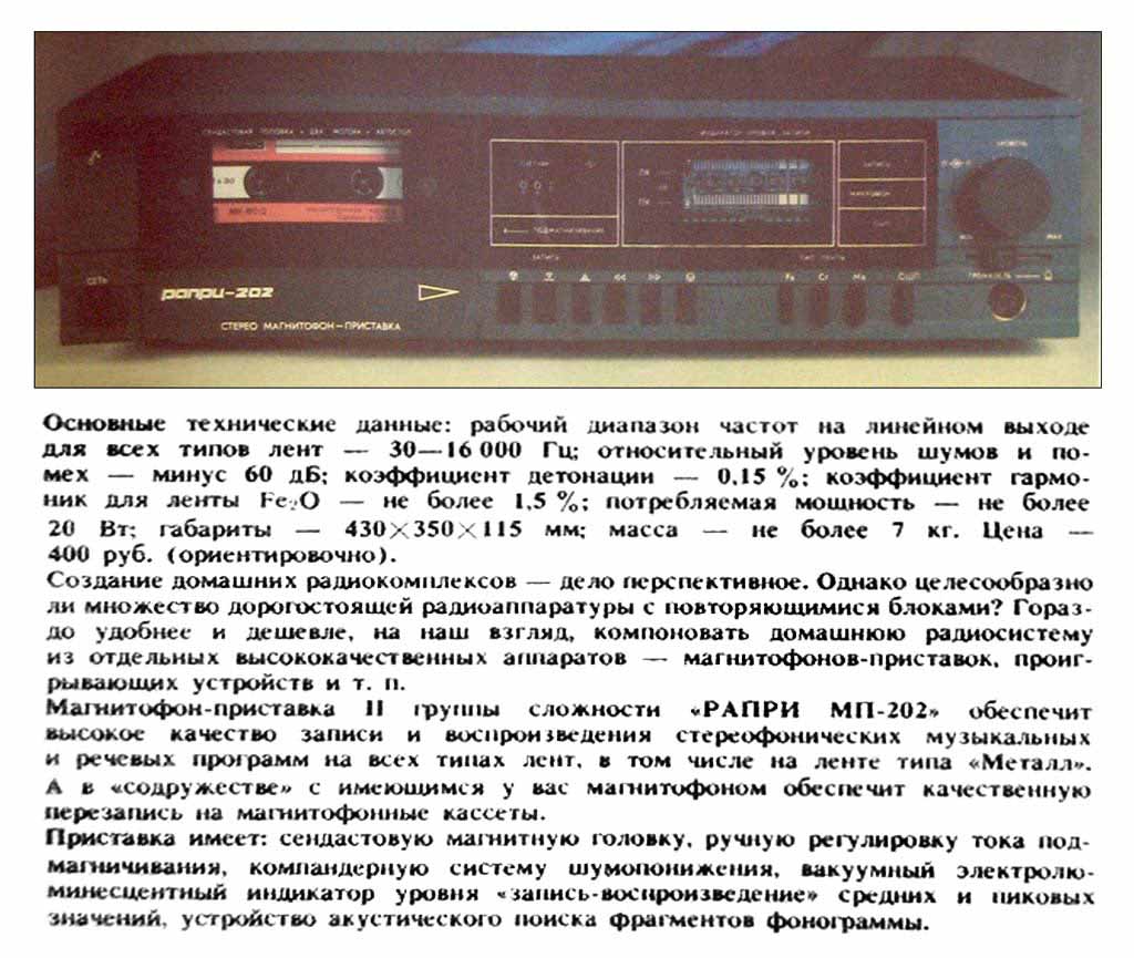 Кассетный магнитофон-приставка "Рапри-202С"