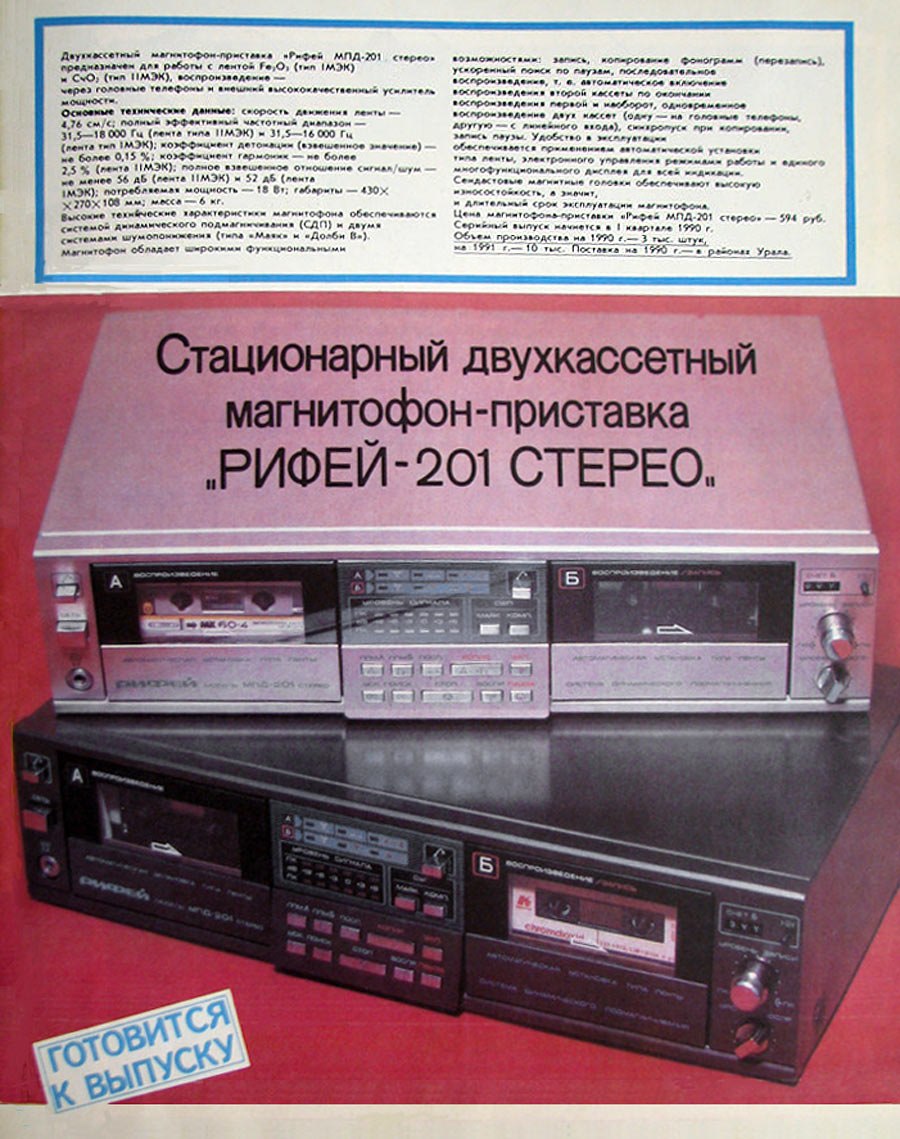 "Рифей МПД-201-стерео" выпускалась с 1990 года Миасским приборным заводом