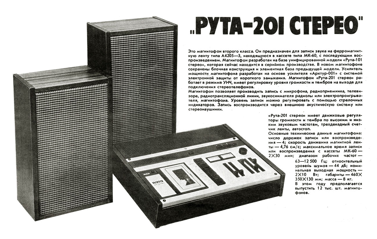 ПСЗ "Вильма". Магнитофон 2-го класса "Рута-201-стерео" предназначен для