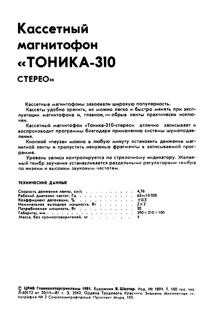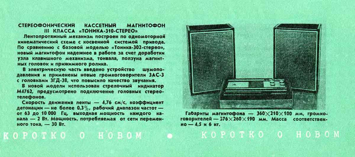 "Тоника-310 стерео" с 1976 года выпускал Вильнюсский ПСЗ "Вильма". Магнитофон