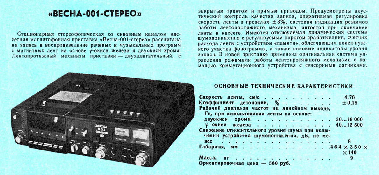 магнитофонная приставка "Весна-001-стерео" в 1980 году опытно выпущена Запорожским