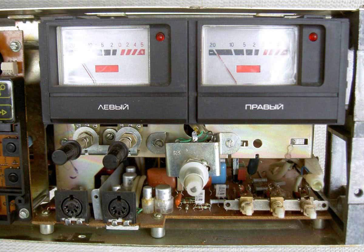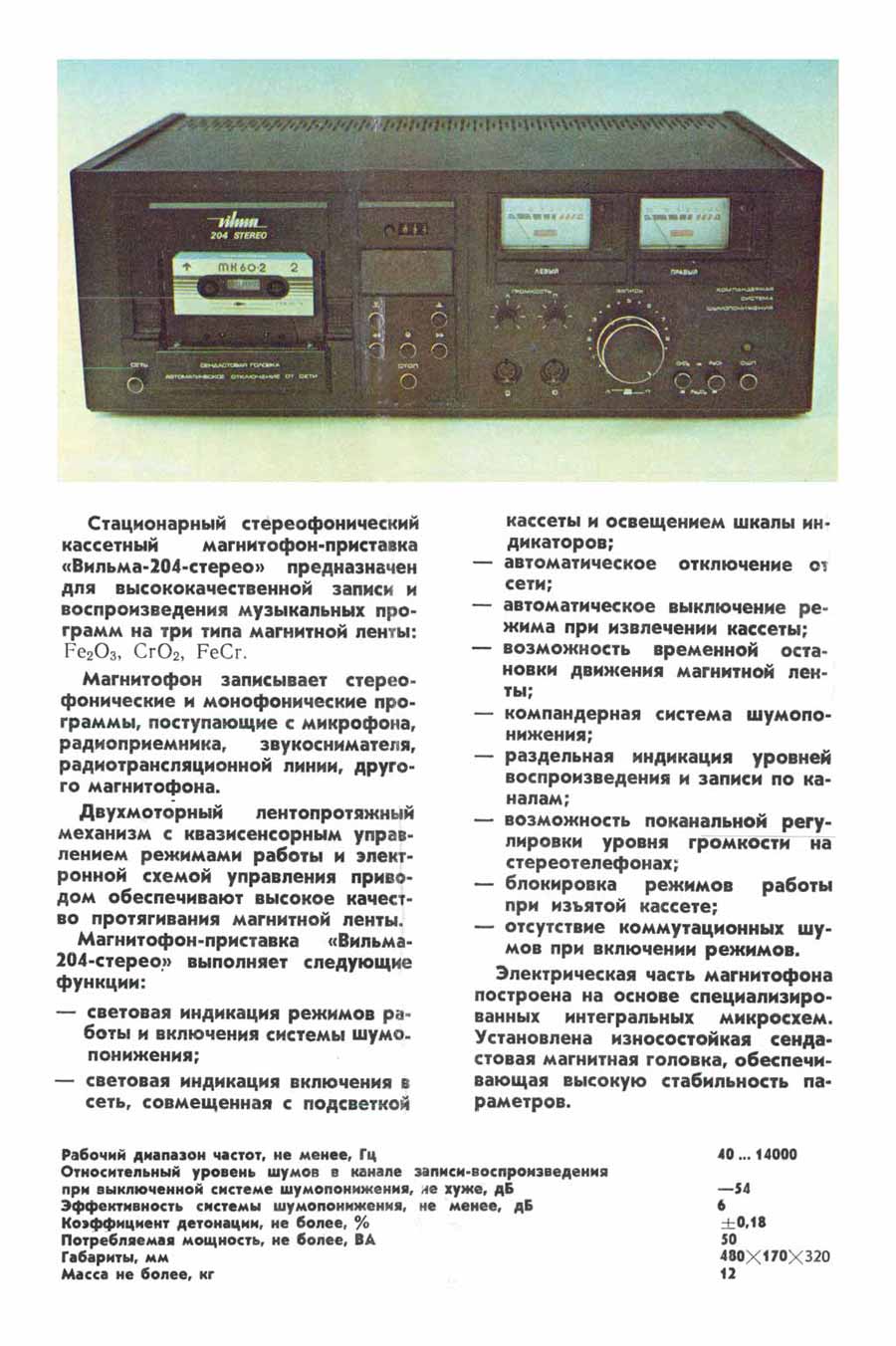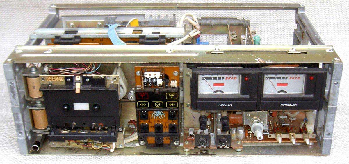 Относительный уровень помех с системой ШП -54 дБ. Габариты магнитофона