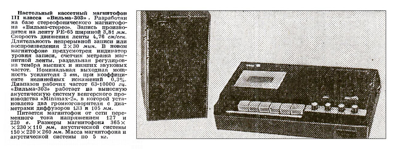 магнитофон "Вильма-303" с 1973 года выпускал Вильнюсский приборостроительный