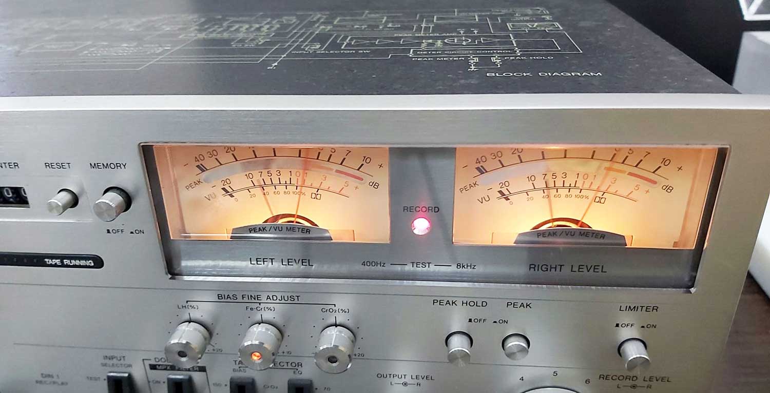 "Dolby-B". Индикаторы записи или воспроизведения с пиковыми указателями.