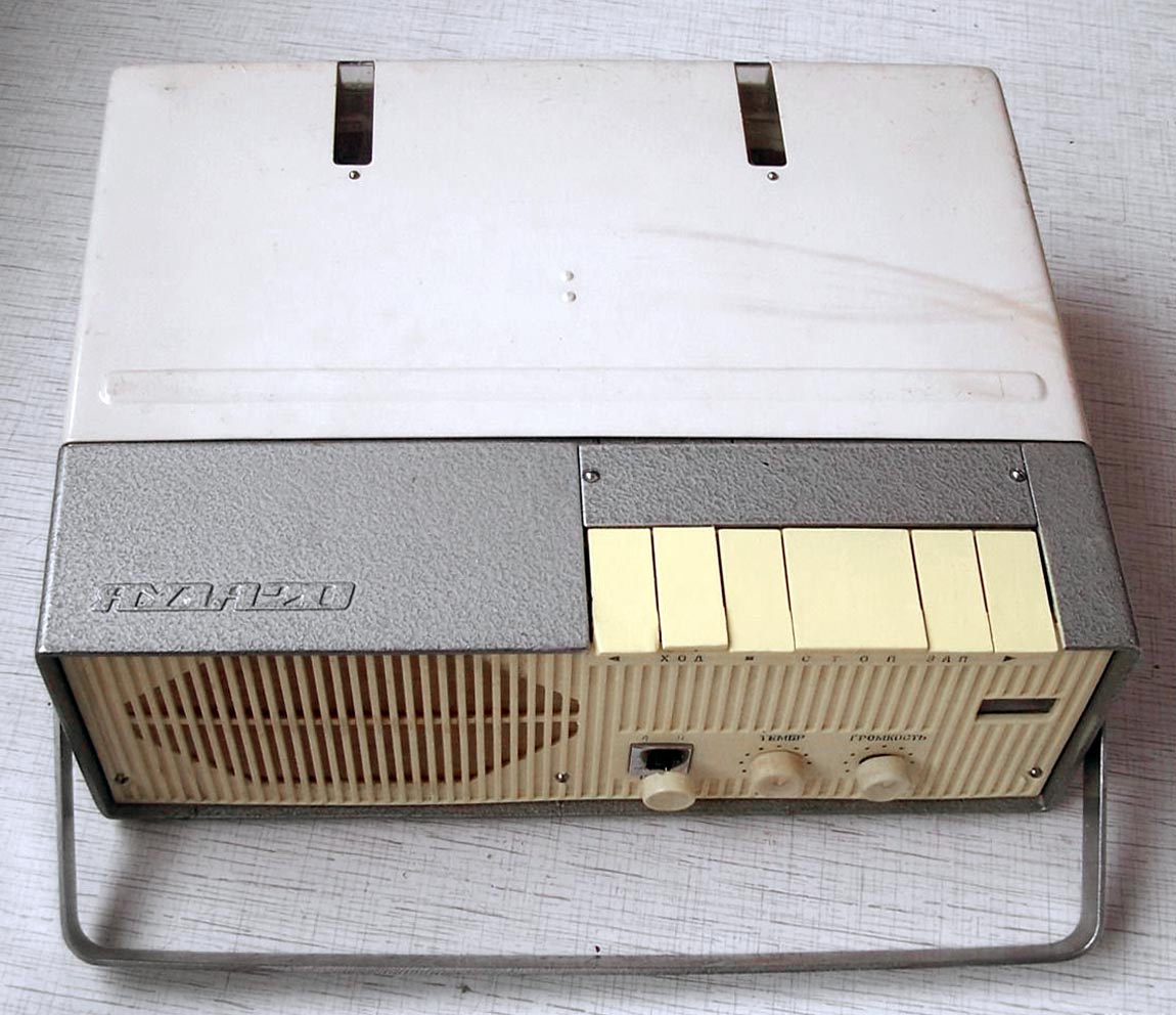 мА, перемоткок около 160 мА. Магнитофон размещён в литом корпусе из силумина