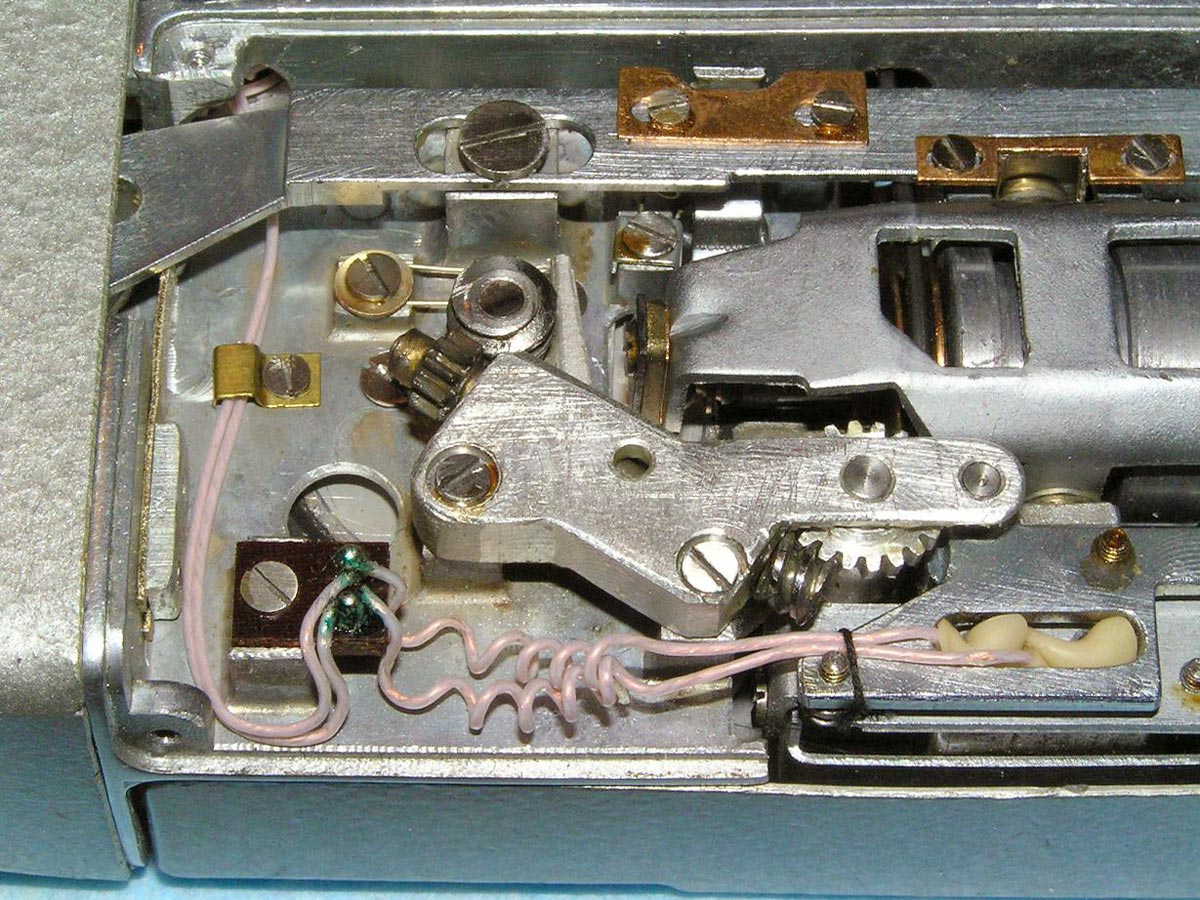 автостопа, расположенный под подающей катушкой. Последний размыкает контакты