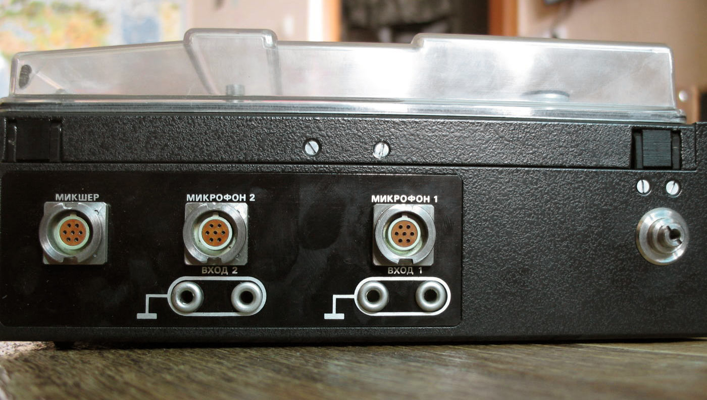 числе при переноске или перевозке. Магнитофон имеет два входа для микрофонов