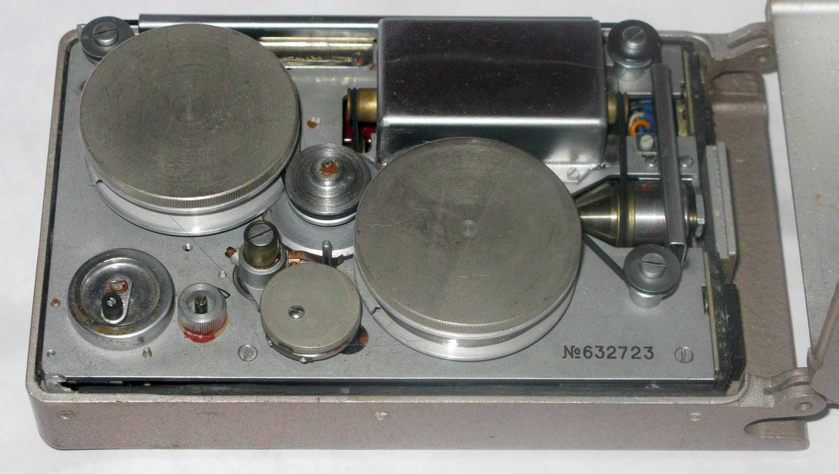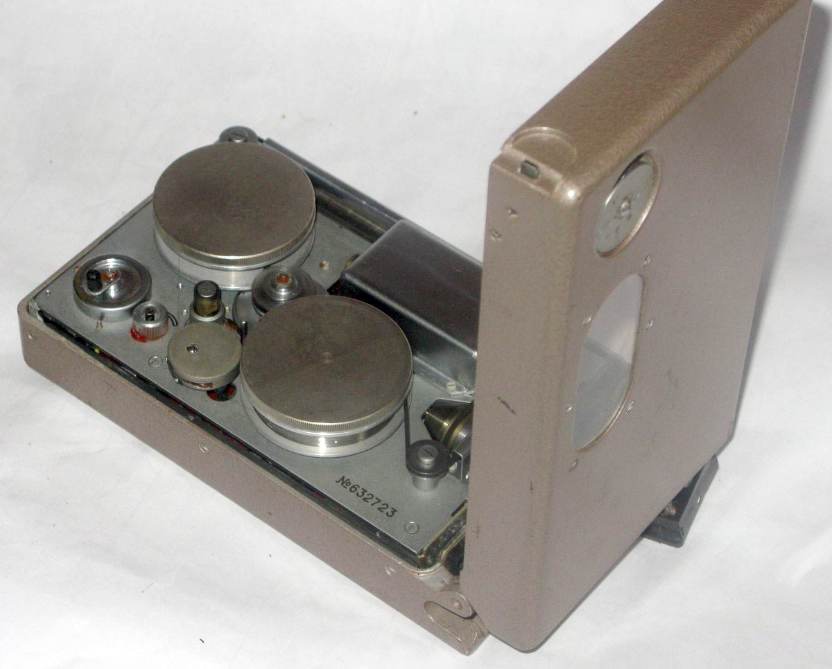 Проволочный ламповый портативный магнитофон "Тритон" выпускался предположительно с 1962 года. Магнитофон предназначен для спецслужб КГБ СССР.