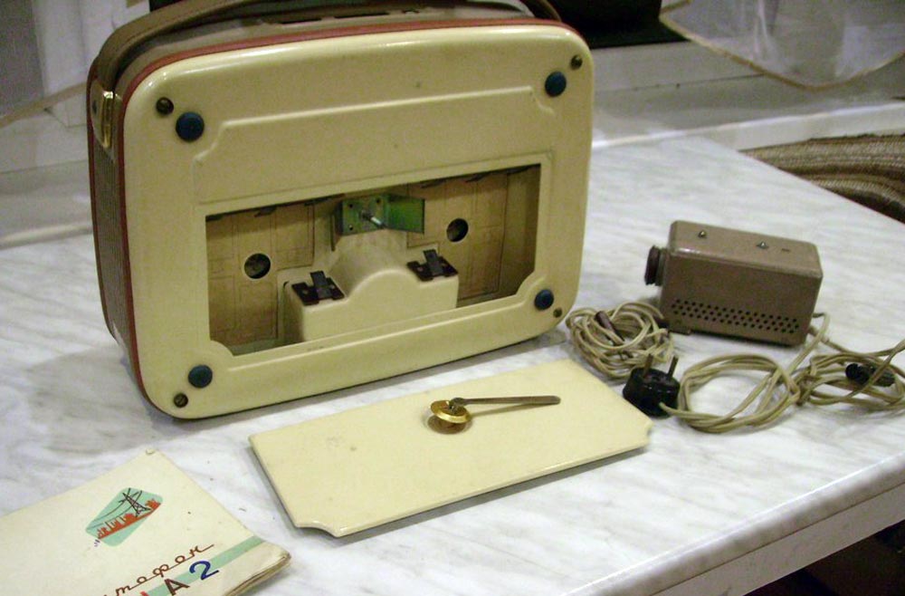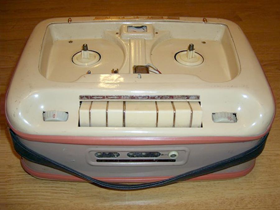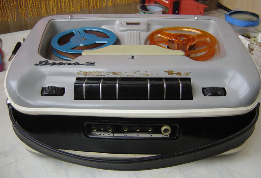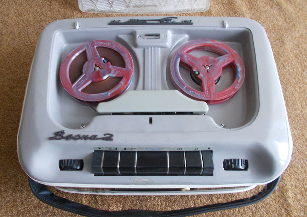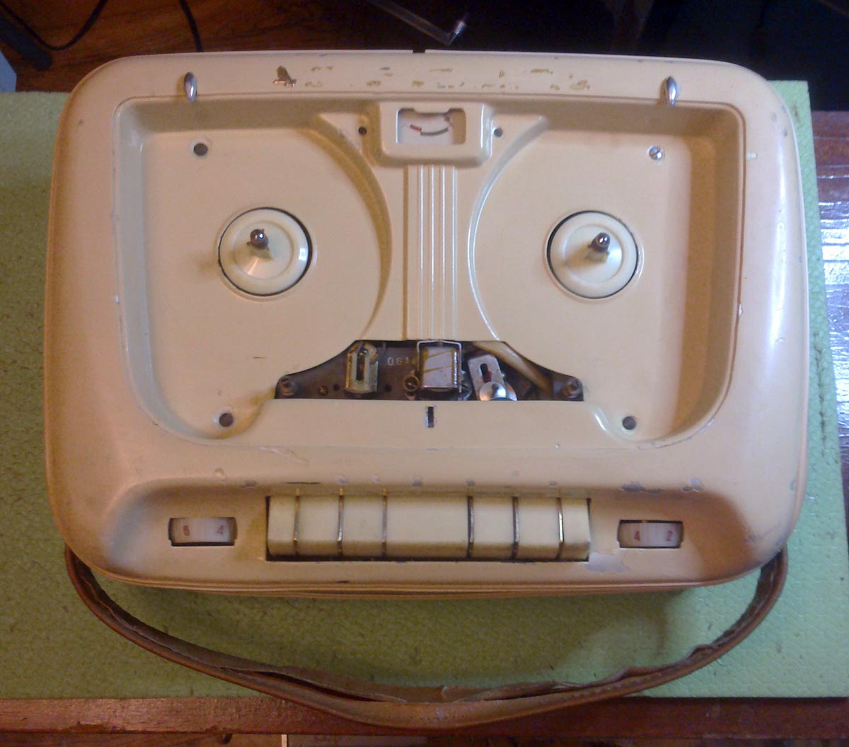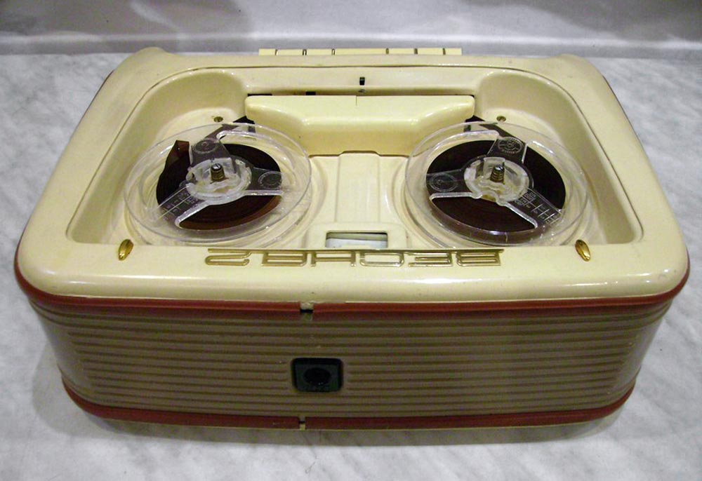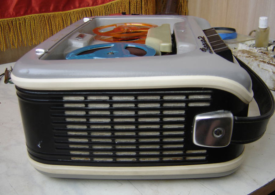 переносной магнитофон с универсальным питанием. Катушки вмещают 100 м.