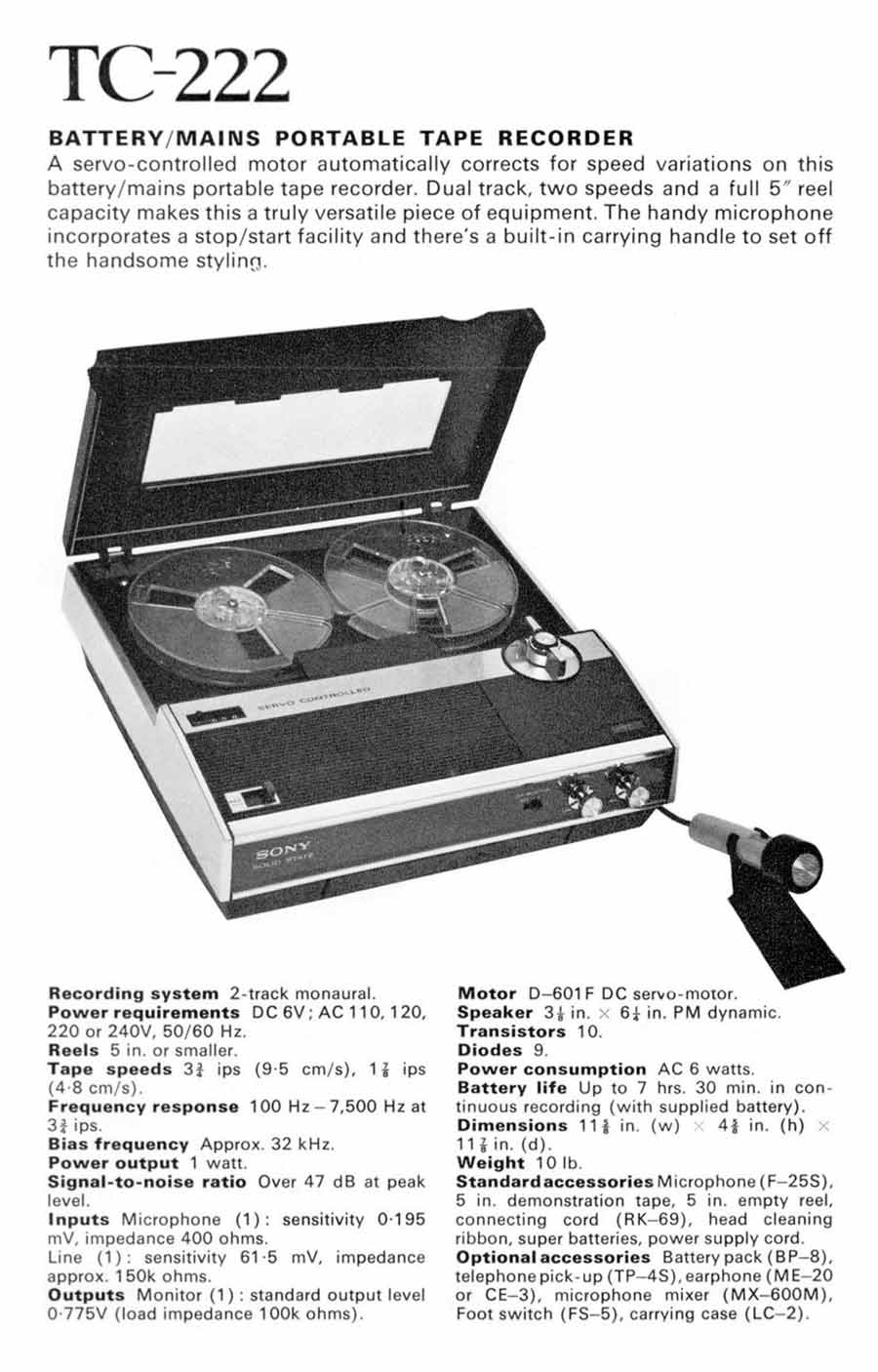 "Sony TC-222" выпускался предположительно с 1969 года японской корпорацией