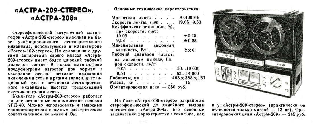 - 463х388х167 мм. Его масса 15 кг. У магнитофона "Астра-209-стерео"