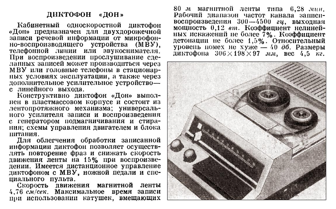 выпускал Ростовский завод "Прибор". Кабинетный диктофон ''Дон'' предназначен