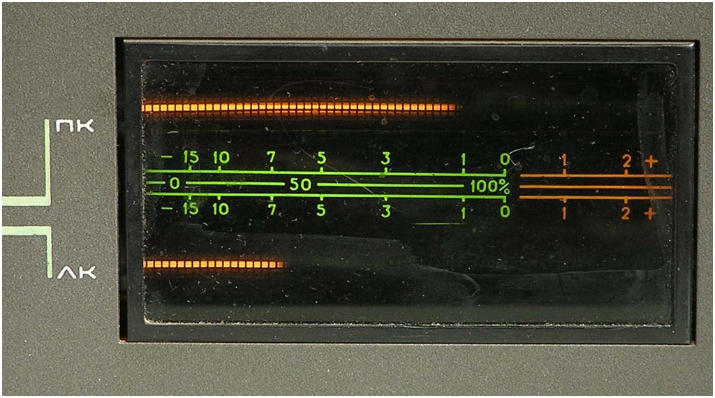 с автономным датчиком; газоразрядный индикатор уровня записи и воспроизведения;