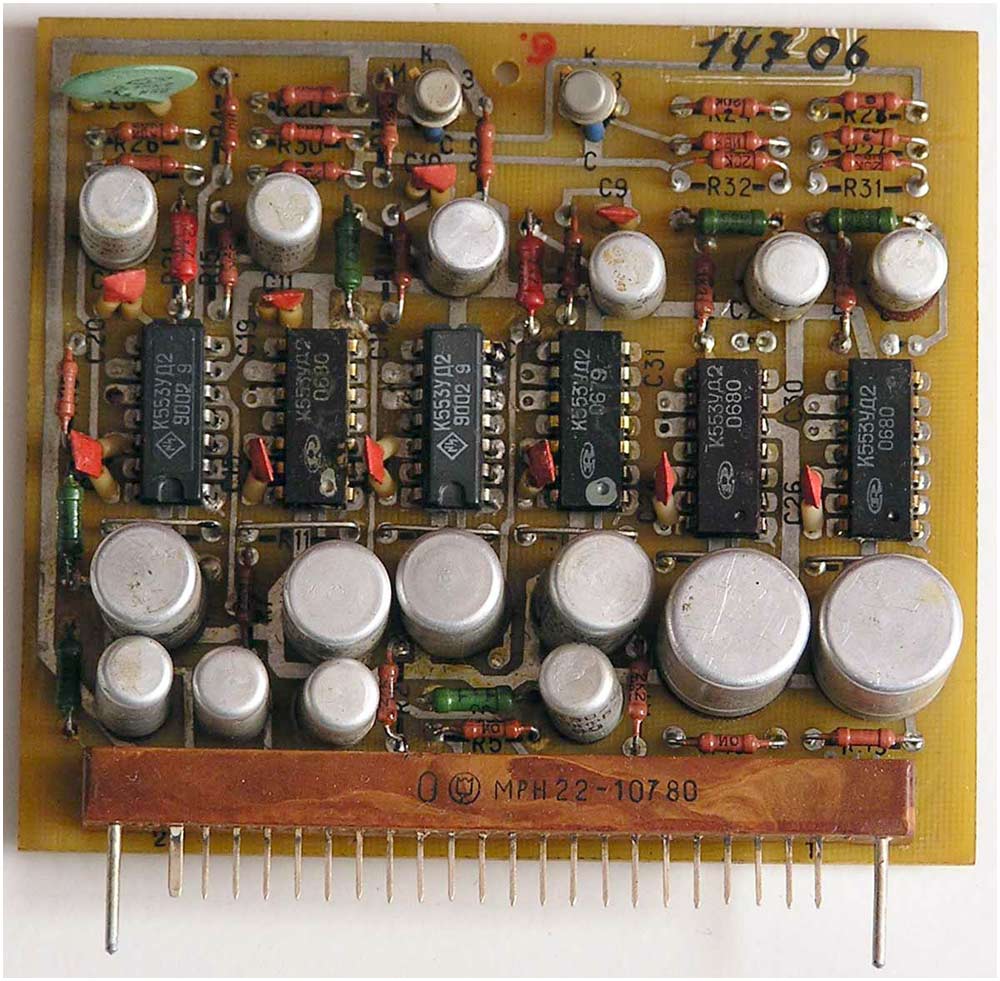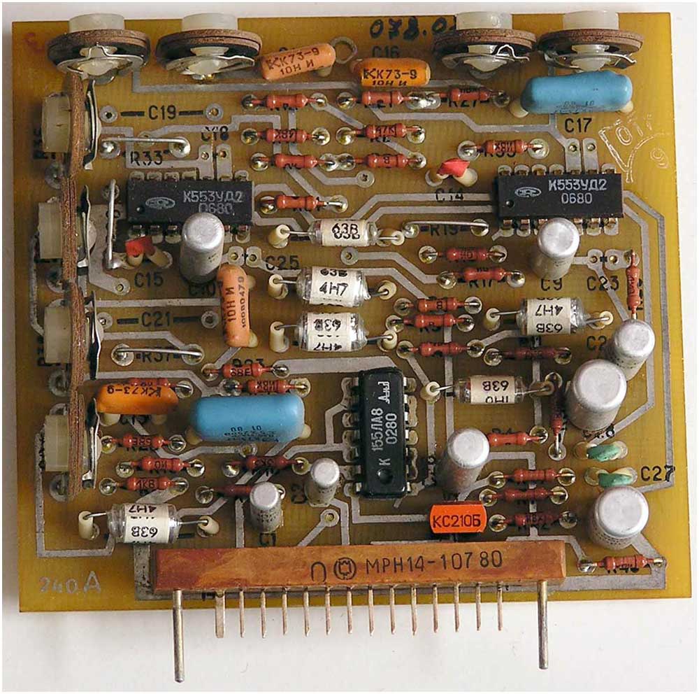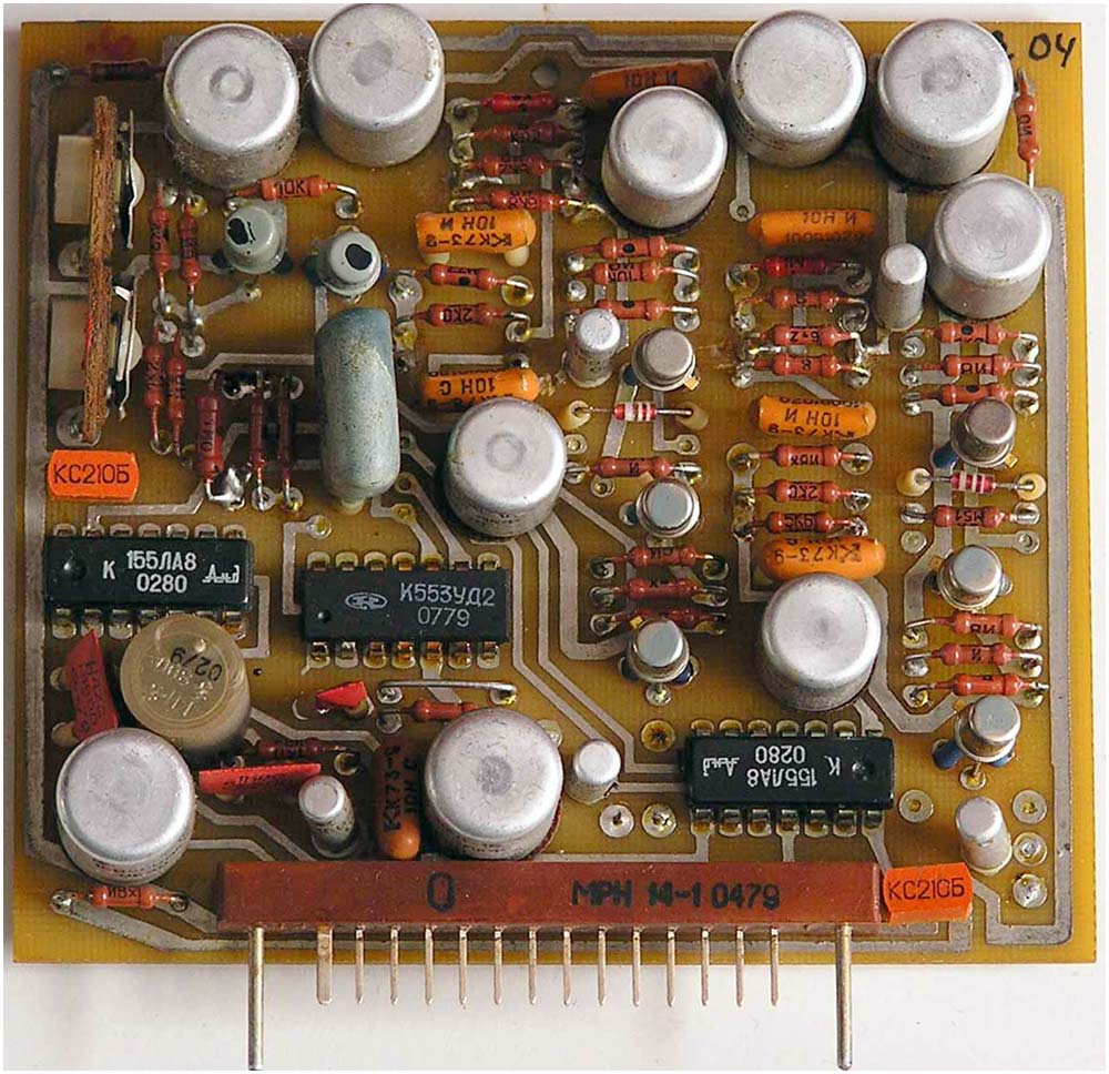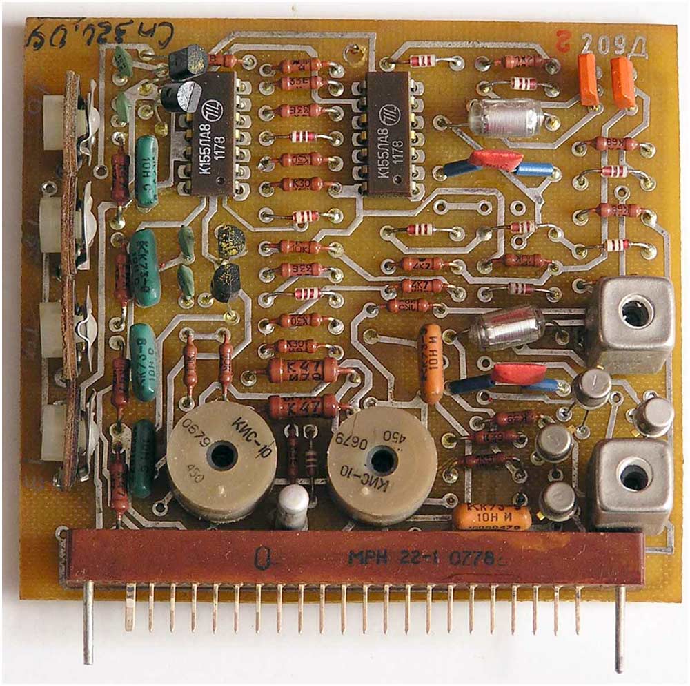 на 40 микросхемах, 132 транзисторах, 80 диодах, 4 оптронах и 2 симисторах.