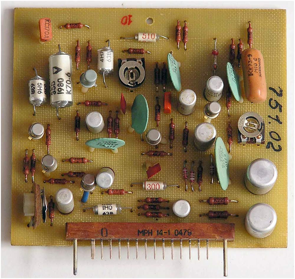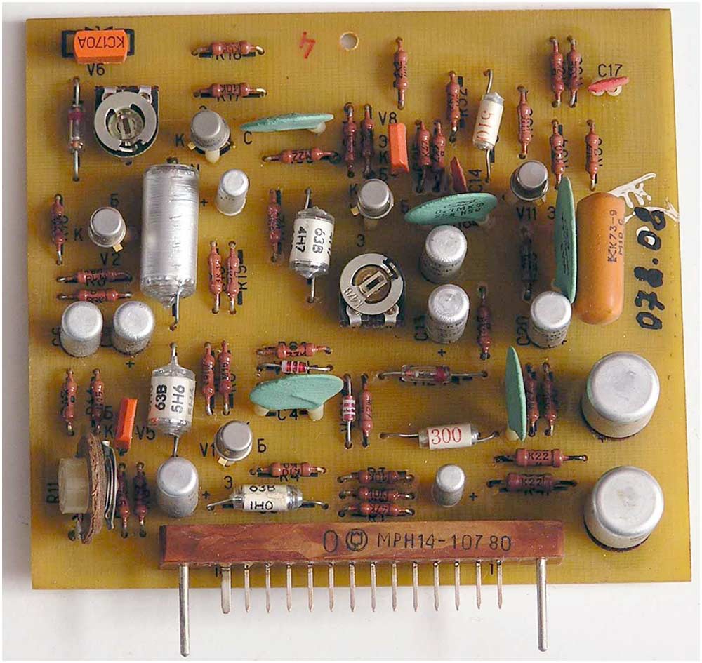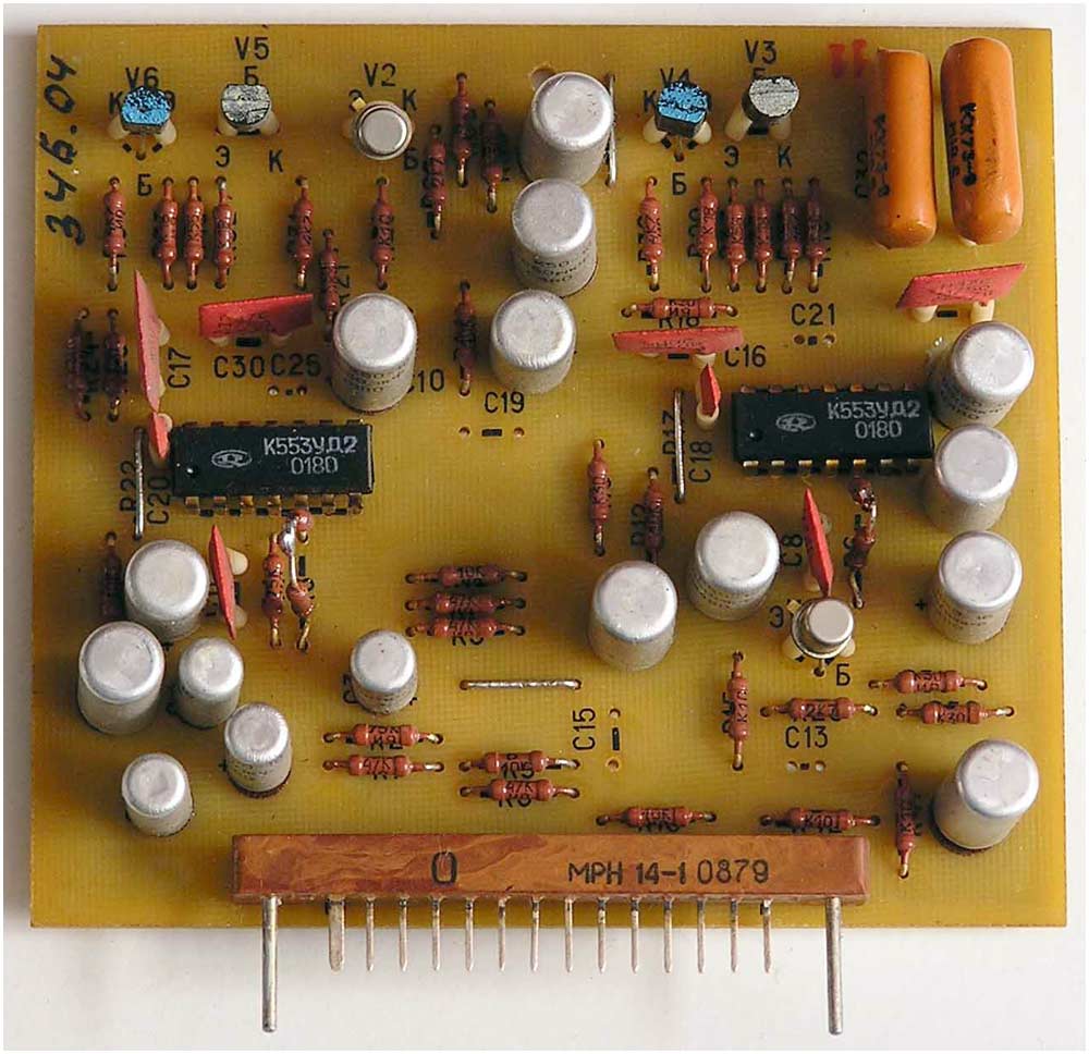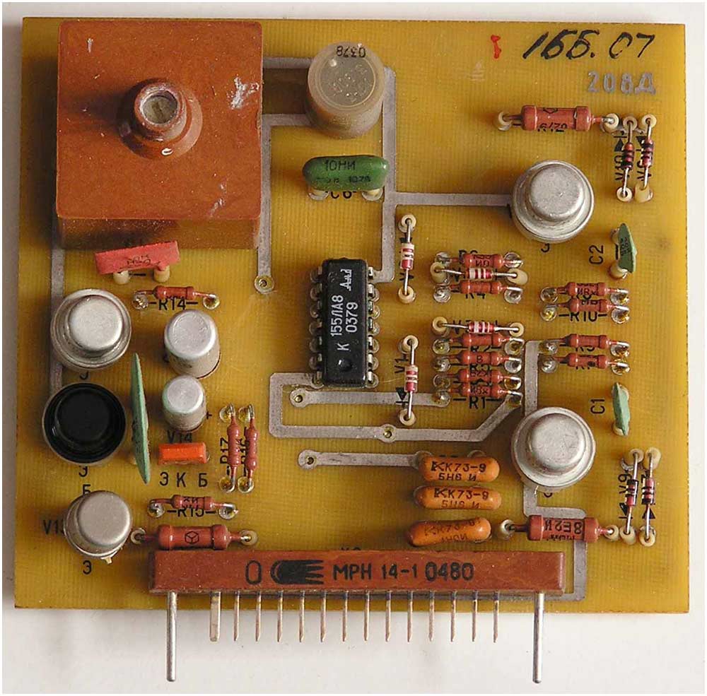 на 40 микросхемах, 132 транзисторах, 80 диодах, 4 оптронах и 2 симисторах.
