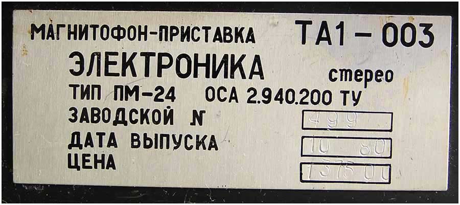 "Электроника ТА1-003" с 1979 года выпускалась Фрязинским заводом "Рений"