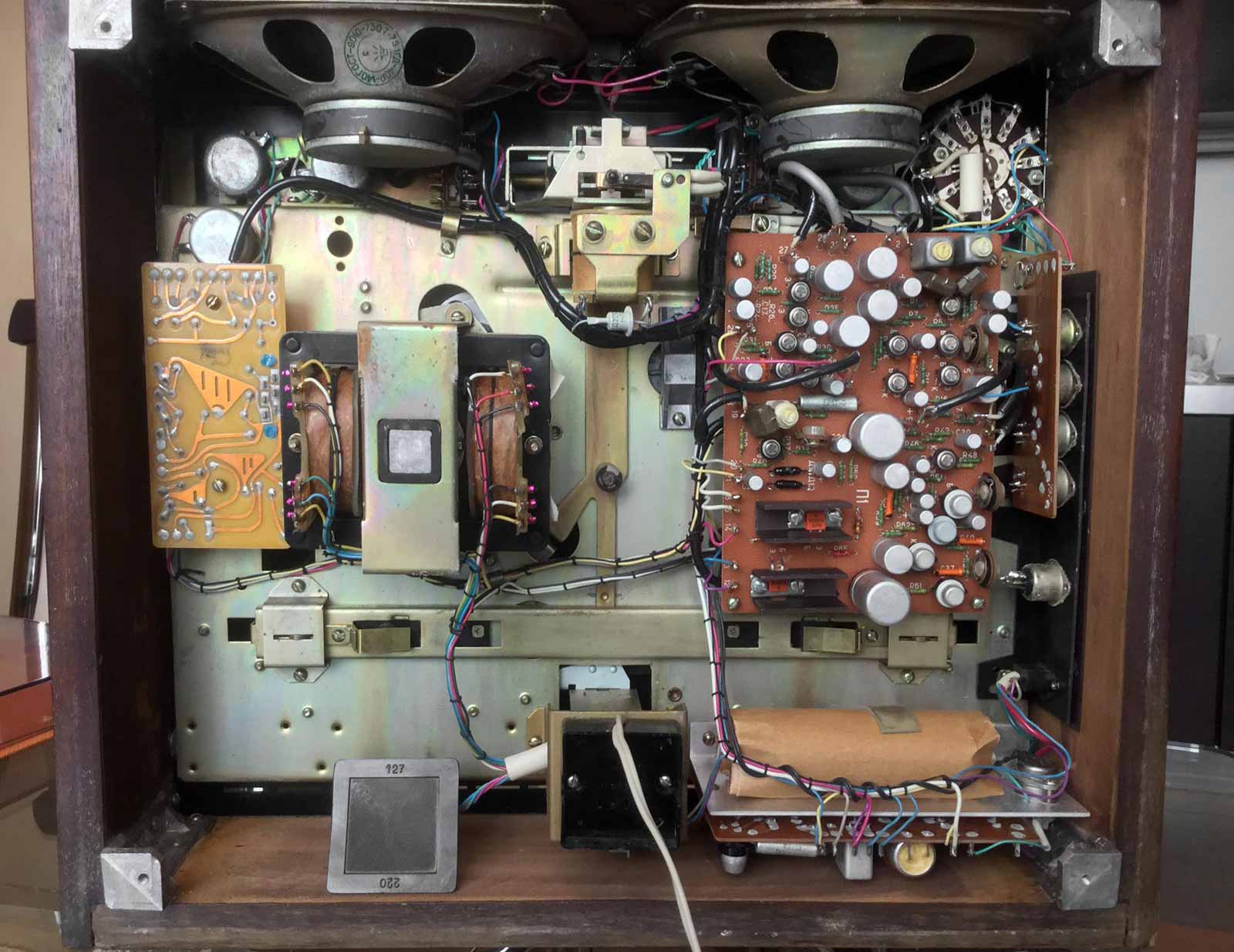на два встроенных громкоговорителя типа 1ГД-40Р - 2 Вт, а при подключении