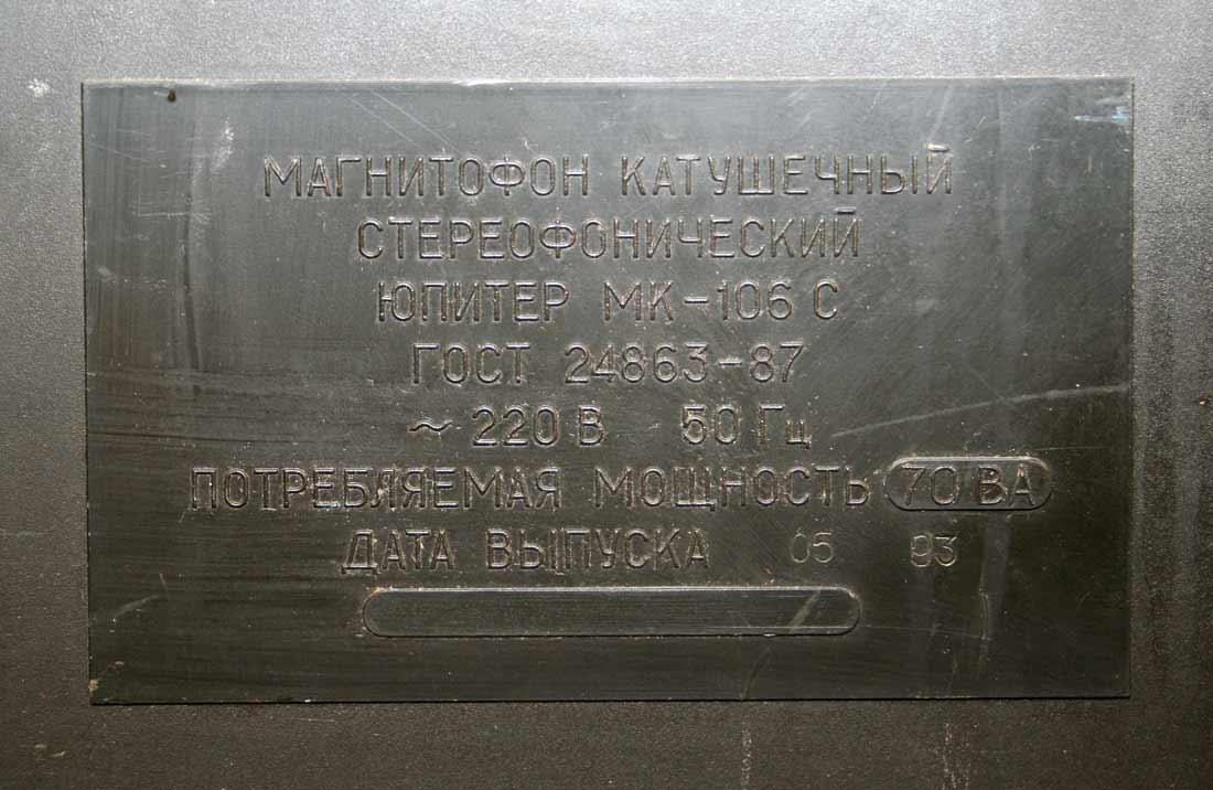 мм. Вес 14,2 кг. С 1992 года выпускался магнитофон "Юпитер МК-106С-1" не