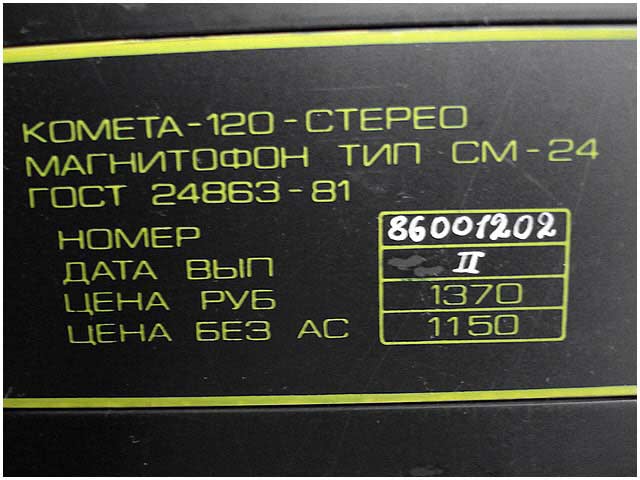 выходная мощность - 2х15 Вт. Потребляемая мощность - 170 Вт. Габариты магнитофона