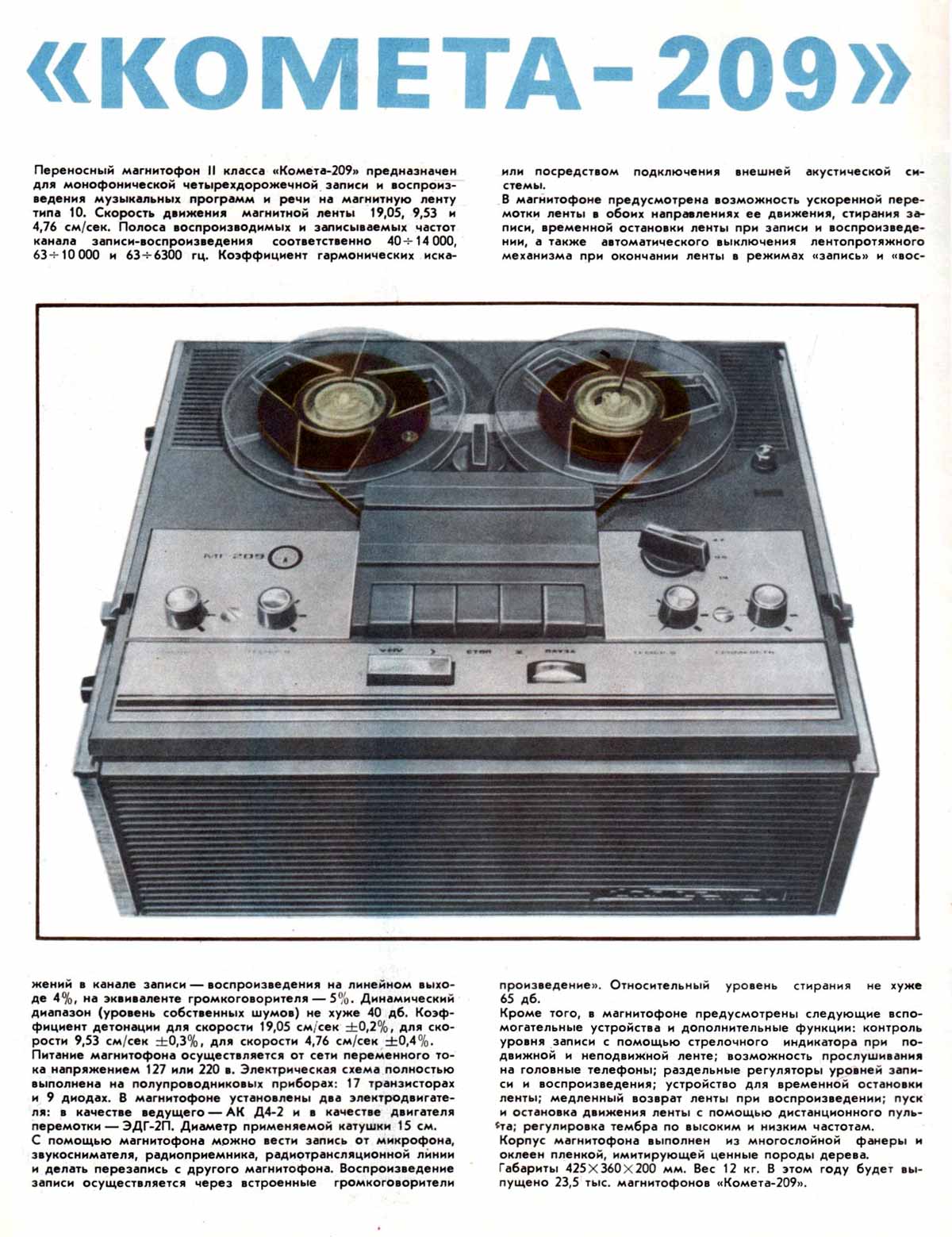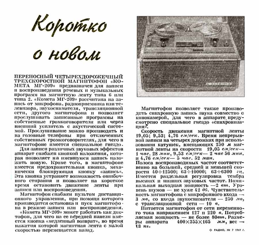 магнитофона "Комета-209".
