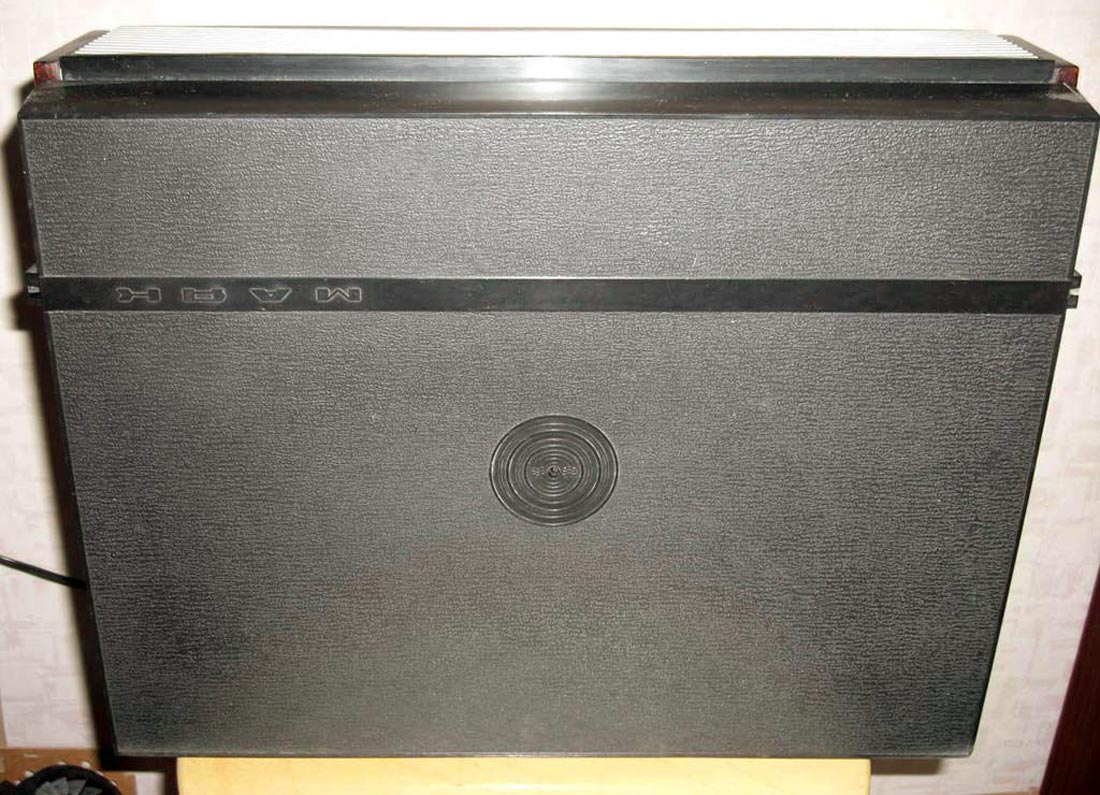 165 мм. Масса - 11,5 кг. Первые магнитофоны выпускали из пластмассы, без