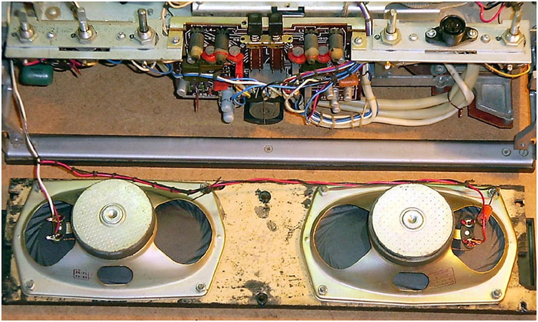 Магнитофон выполнен переносной конструкцией в деревянном корпусе. В АС