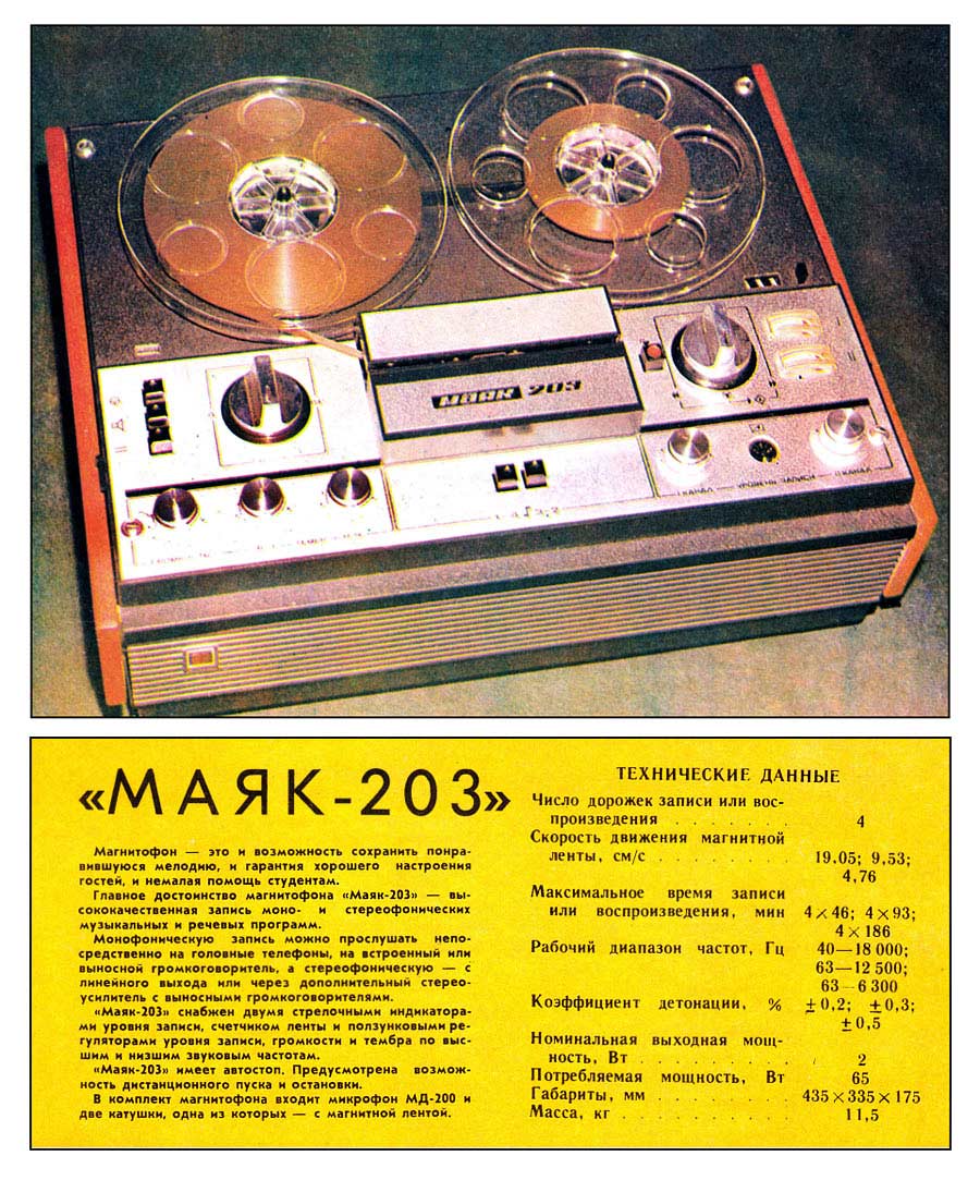 полным аналогом магнитофона "Маяк-203".