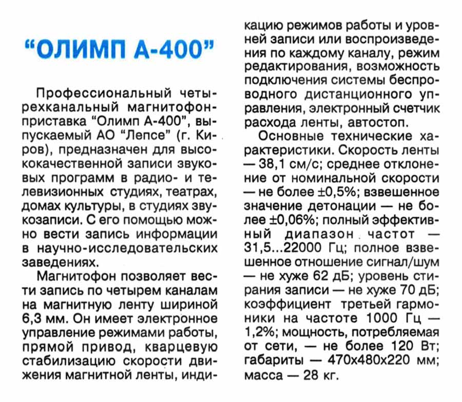 модели выпускали устройство регистрации ''Олимп-400Р'', отличающееся 2