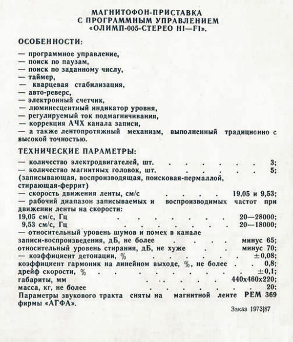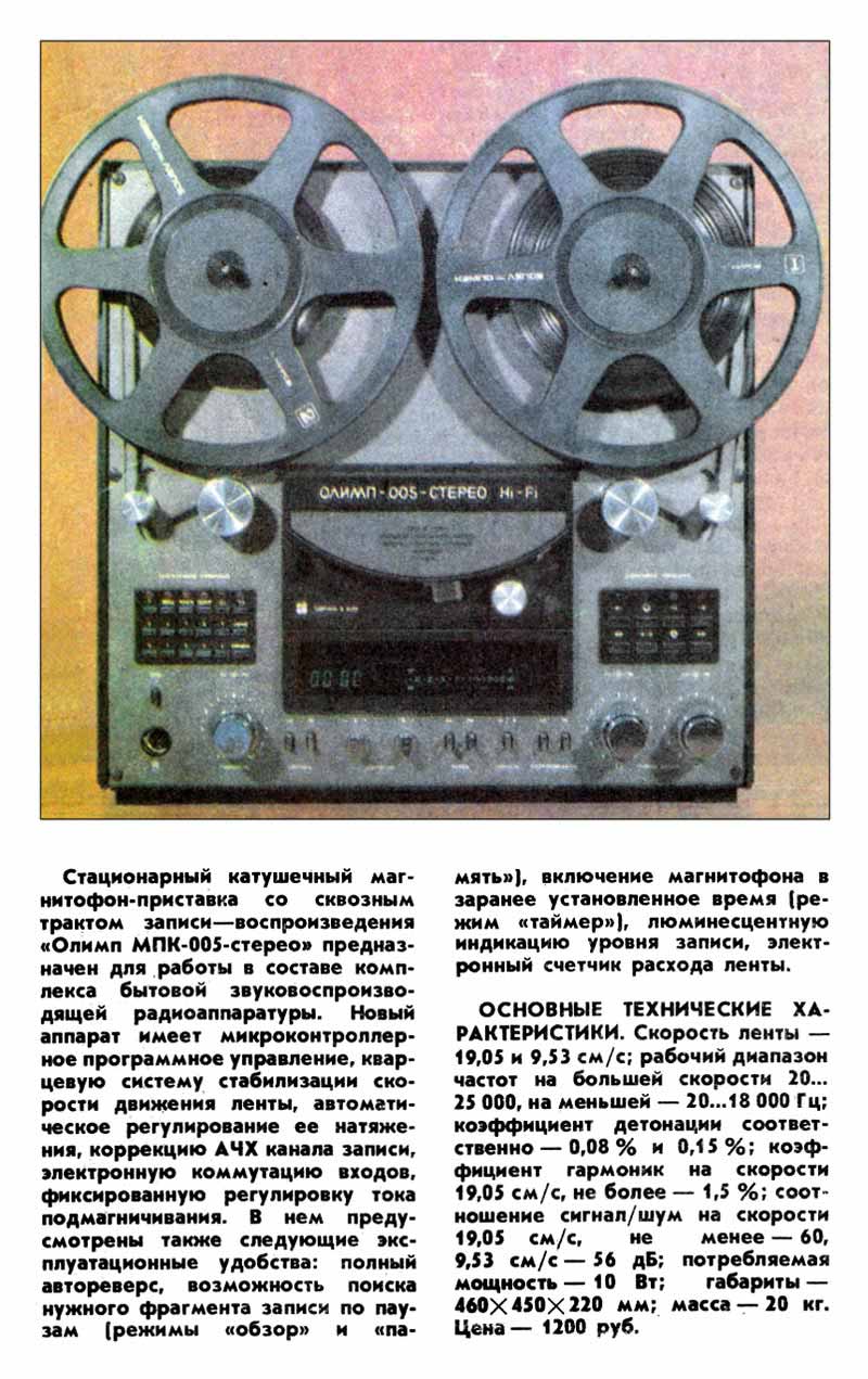 магнитофон-приставку "Олимп МПК-005С-1", где были устранены все недостатки