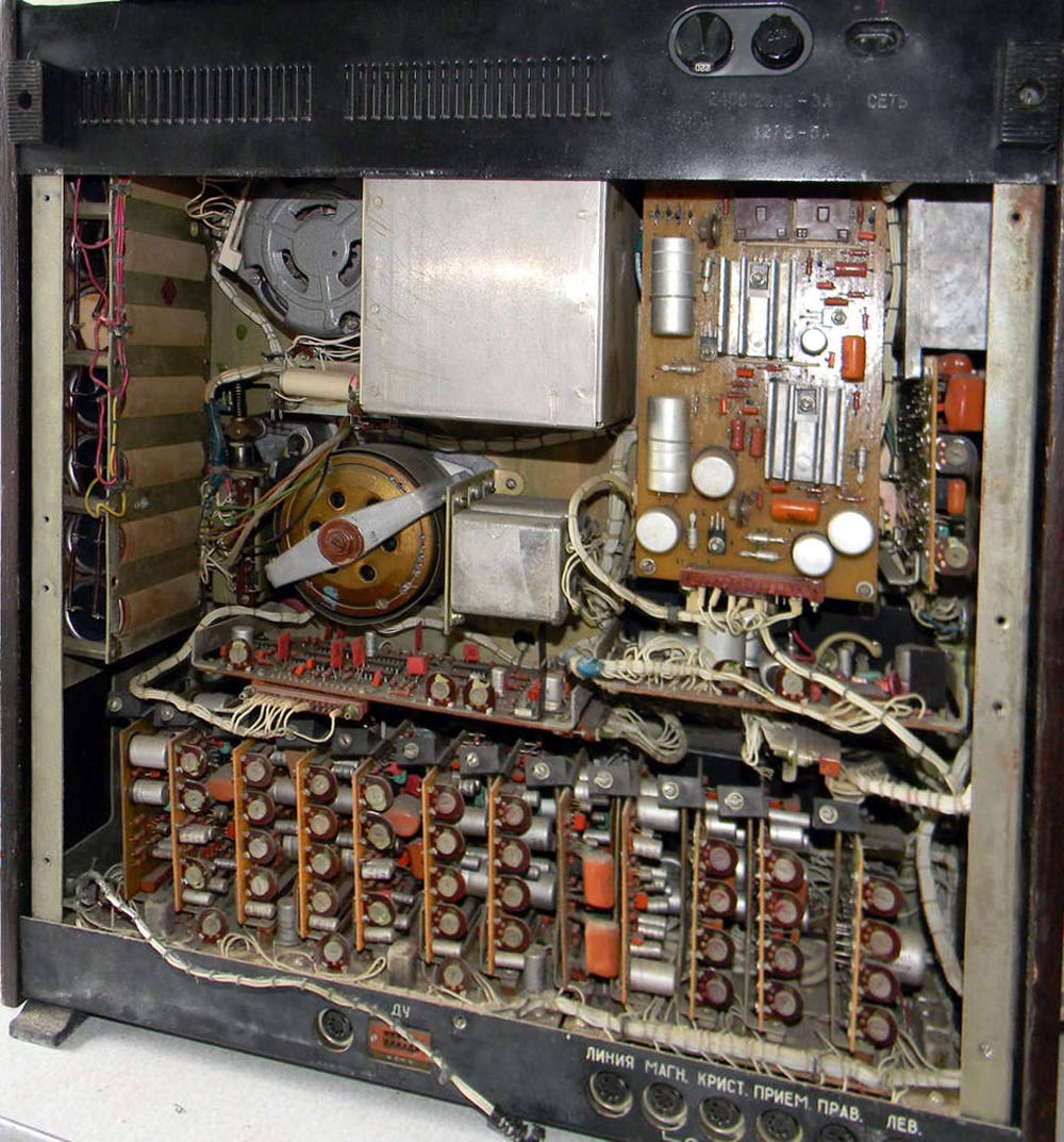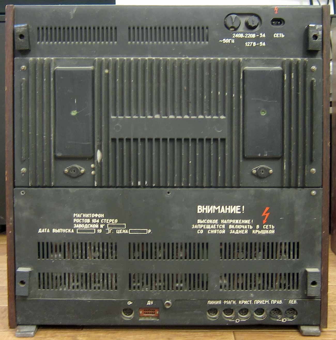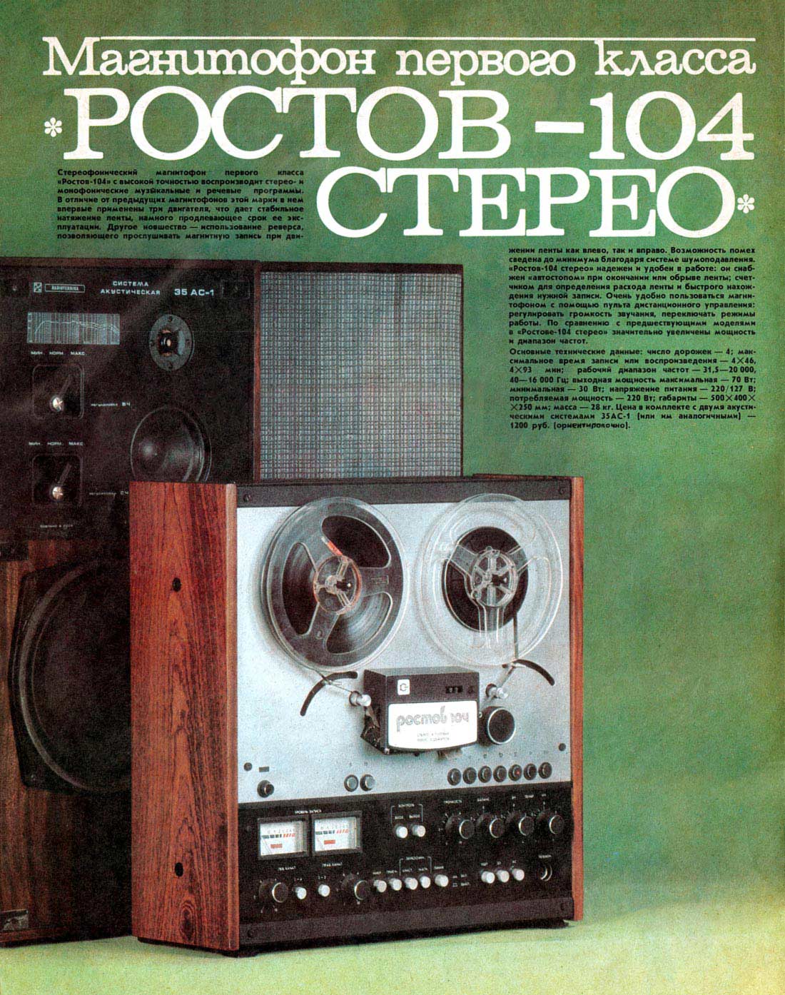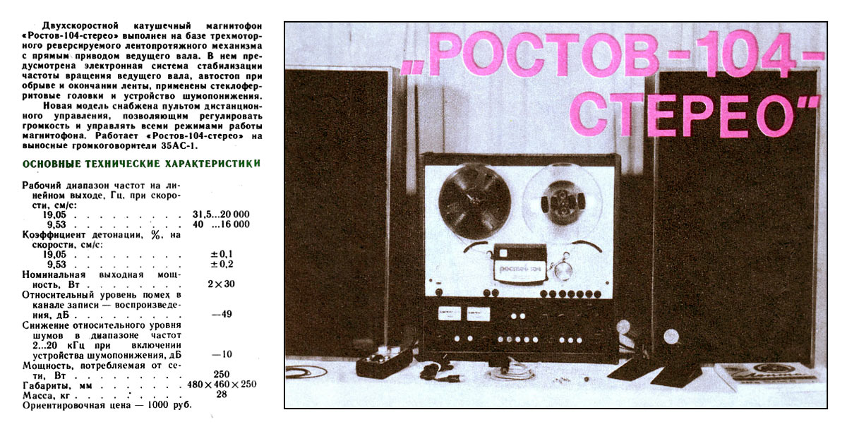 магнитофон первого класса ''Ростов-104-стерео'' выполнен на базе трёхмоторного