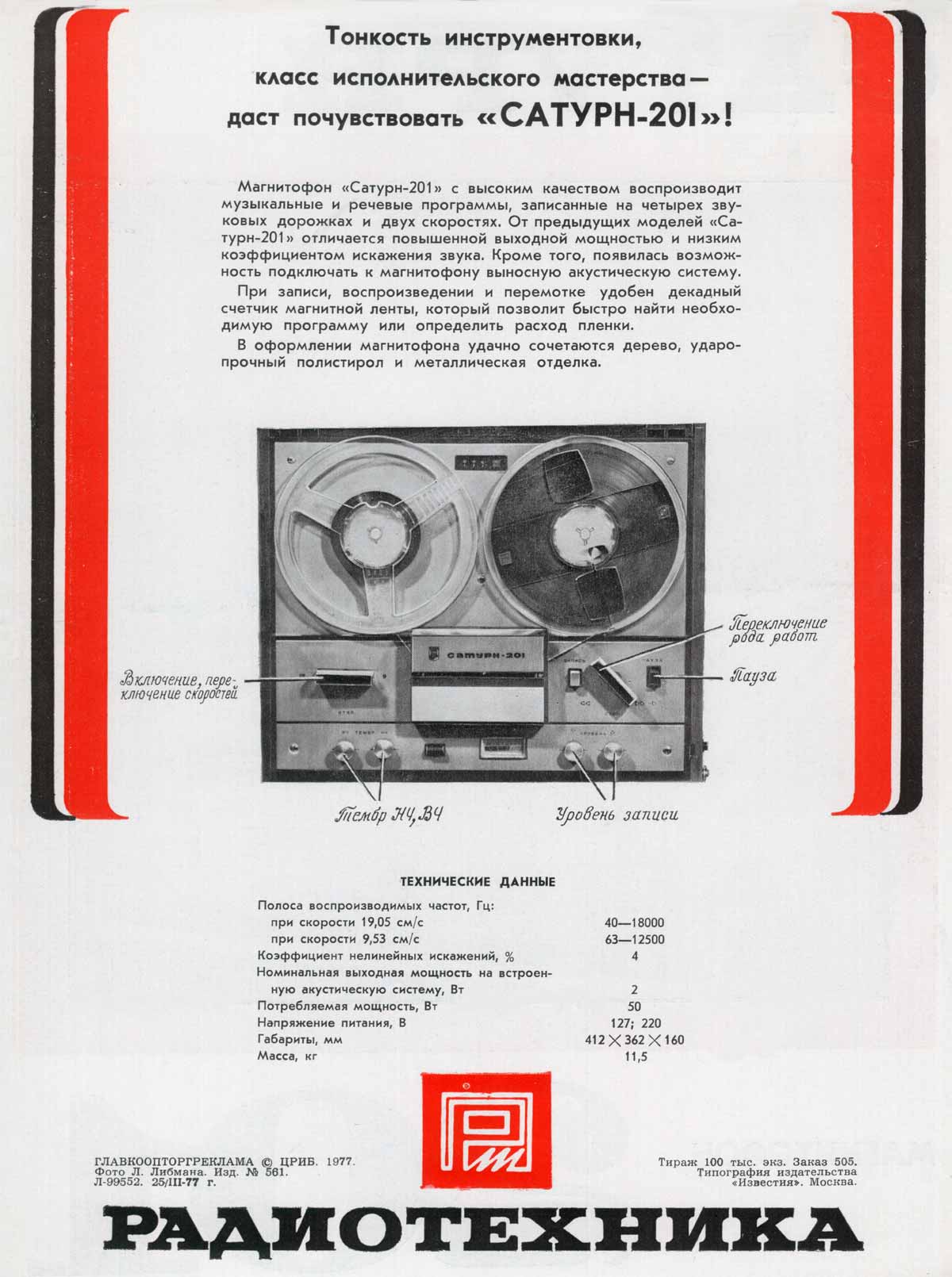 Описание магнитофона "Сатурн-201" в справочнике