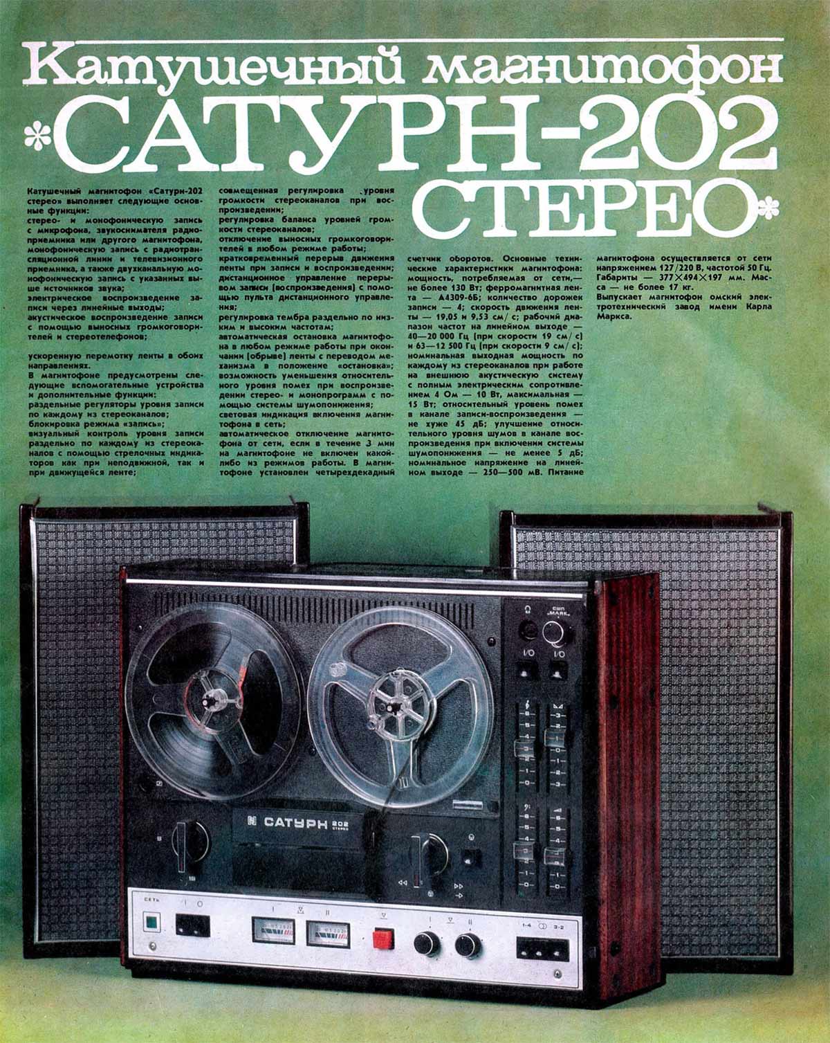 Описание магнитофона "Сатурн-202-стерео" в справочнике