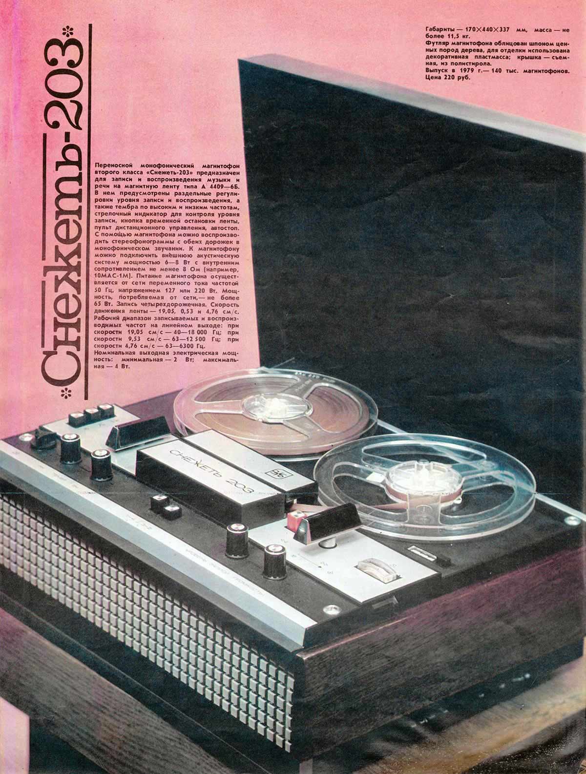 магнитофон "Снежеть-203" с 1979 года выпускал Брянский ЭМЗ. Магнитофон
