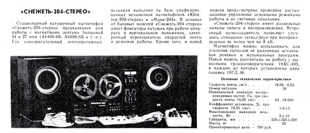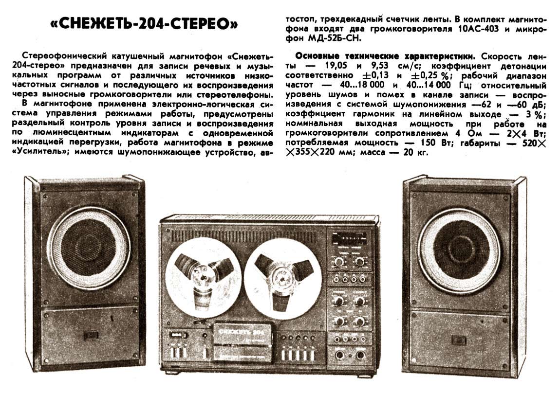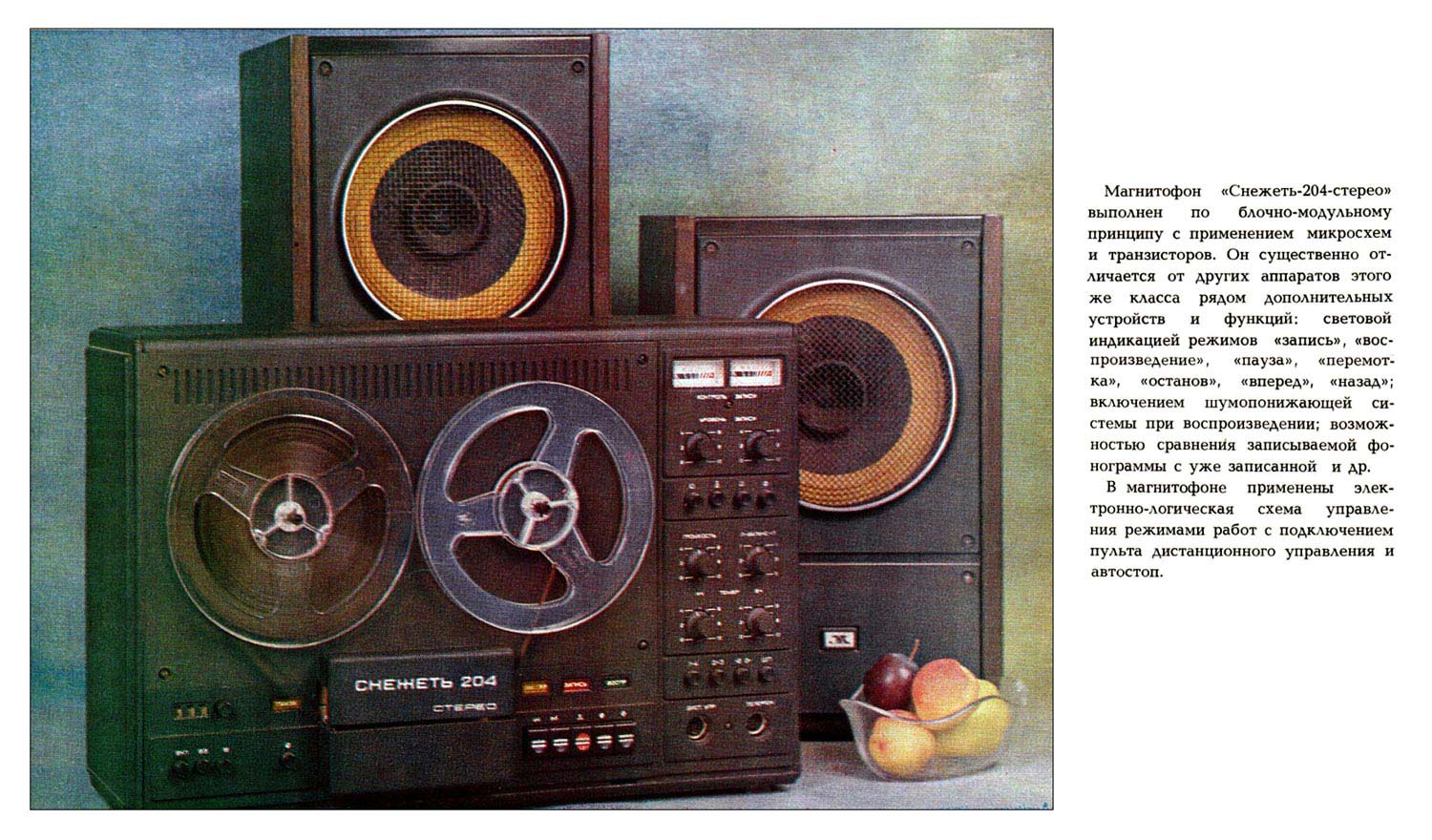 завод. Стереофонический катушечный магнитофон ''Снежеть-204-стерео'' обеспечивает