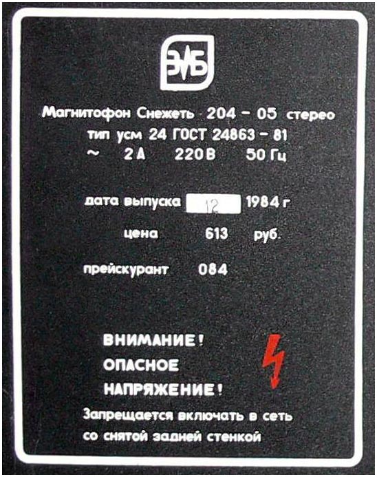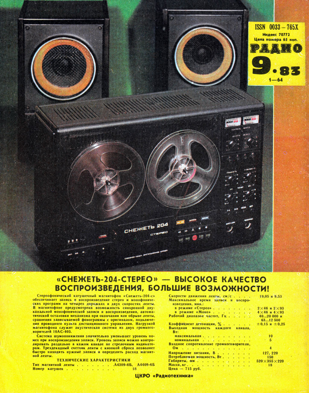 магнитофон "Снежеть-204-стерео" с 1981 года выпускал Брянский электромеханический