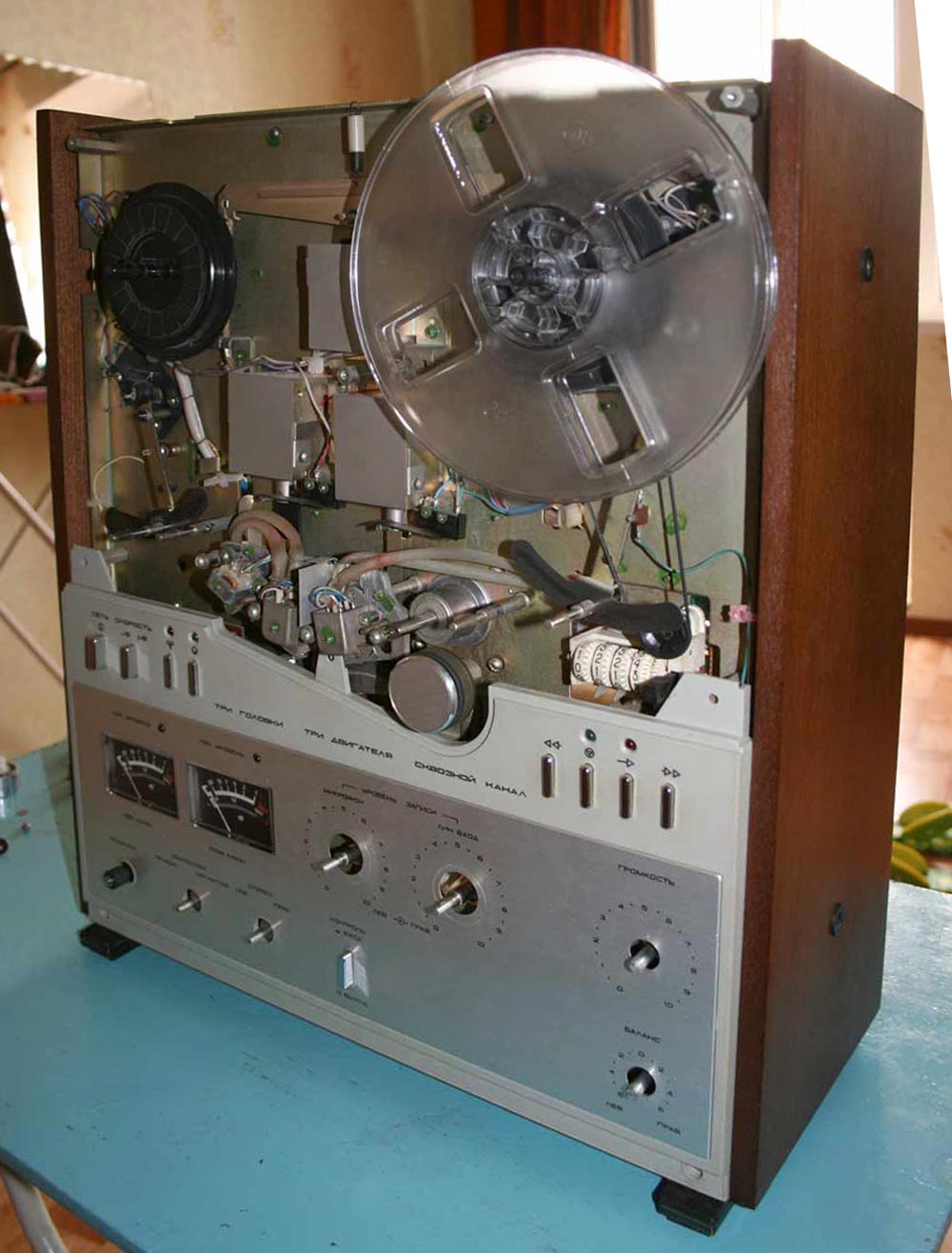 и автоматическим слежением за натяжением магнитной ленты при перемотке