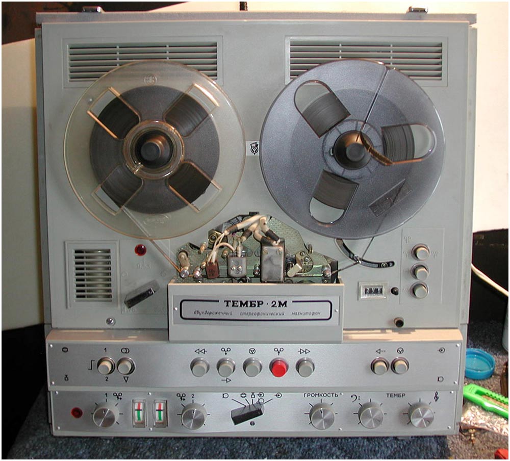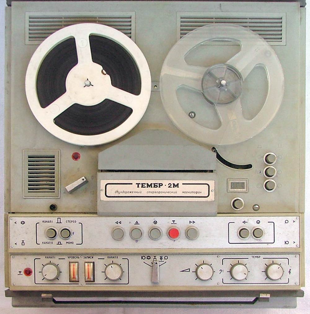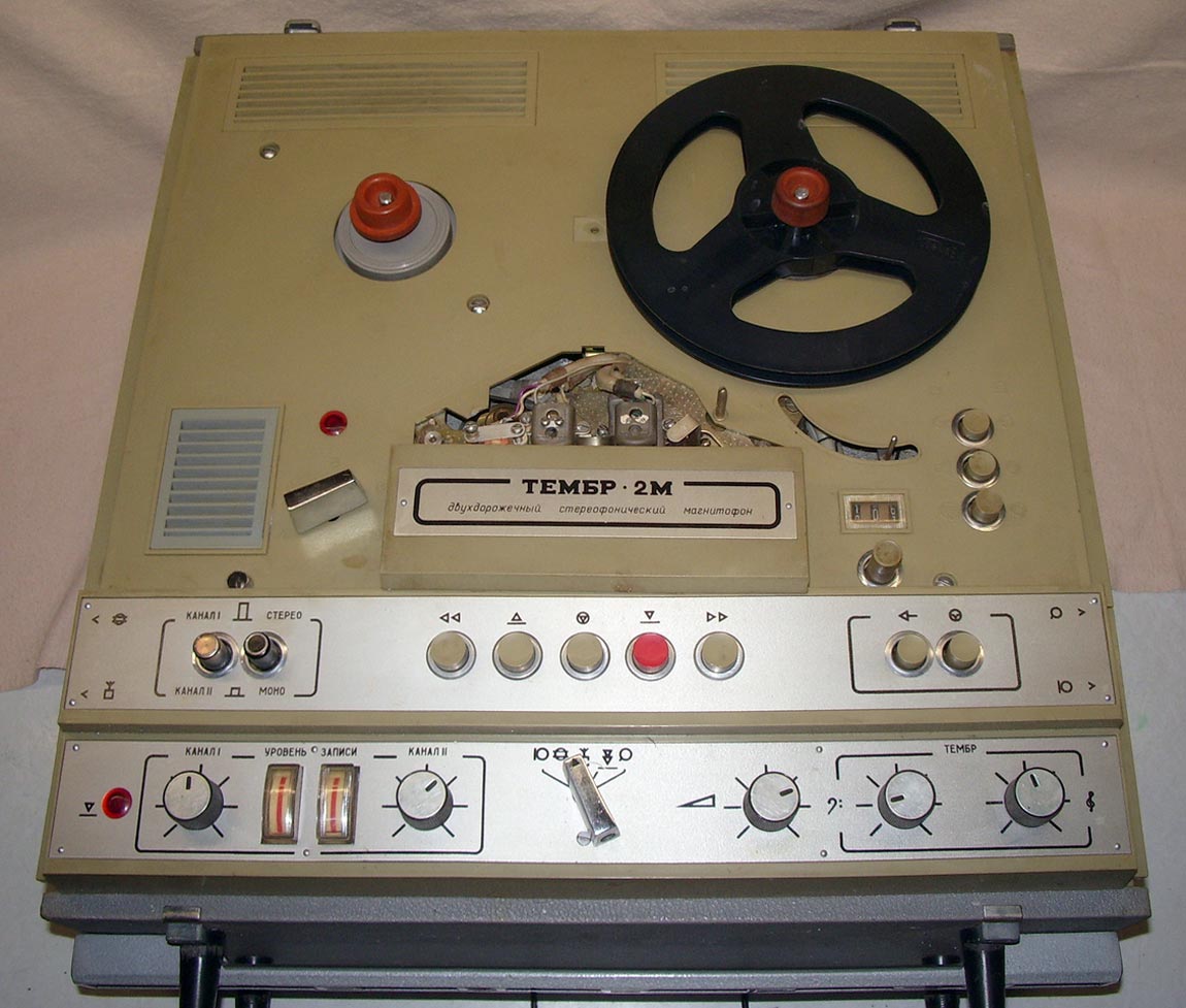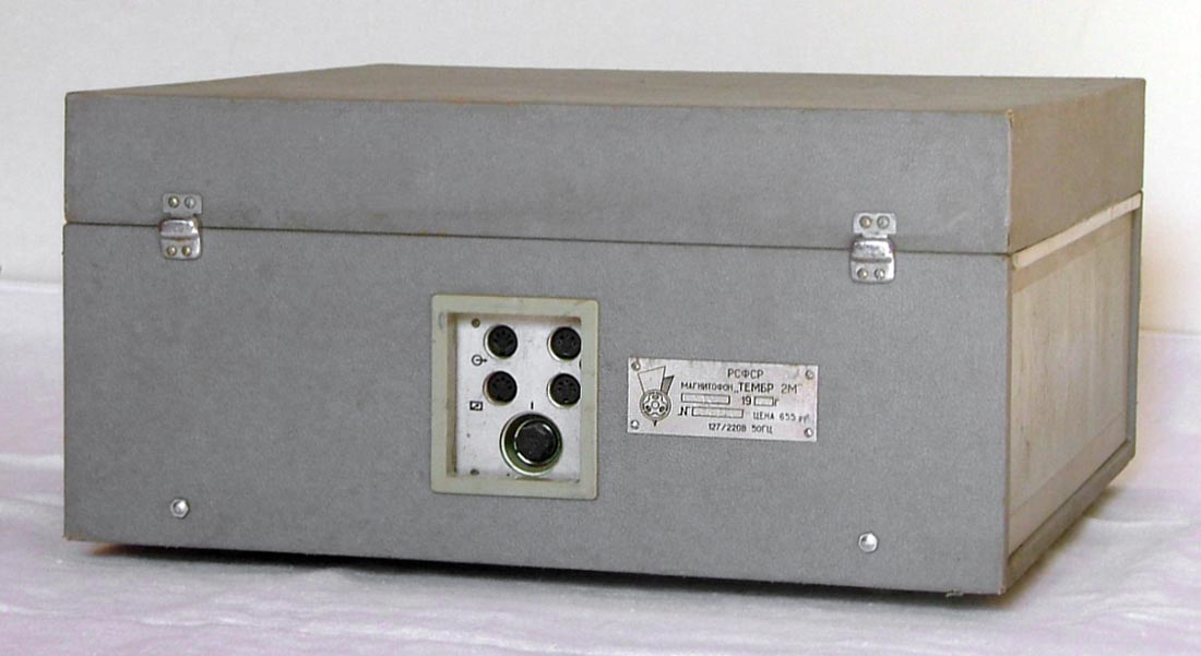 Стереофонический магнитофон "Тембр-2М" выпускал с 1977 года Горьковский завод имени Петровского. Трёхскоростной транзисторный магнитофон предназначен для записи и воспроизведения фонограмм. В комплект входит усилитель "П-70" (он описан на сайте) с двумя акустическими системами. Магнитофон имеет контрольные громкоговорители. Краткие характеристики: Скорость протяжки ленты: 4,76, 9,53 и 19,05 см/сек. Номинальная выходная мощность на собственную АС - 2 Вт. Рабочий диапазон частот соответственно скорости: 63...6300, 63...12500 и 40...16000 Гц. Габариты модели - 485х445х225 мм. Масса - 25 кг. Цена 665 рублей.