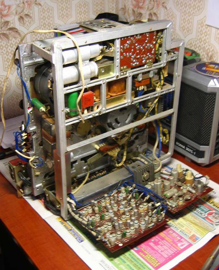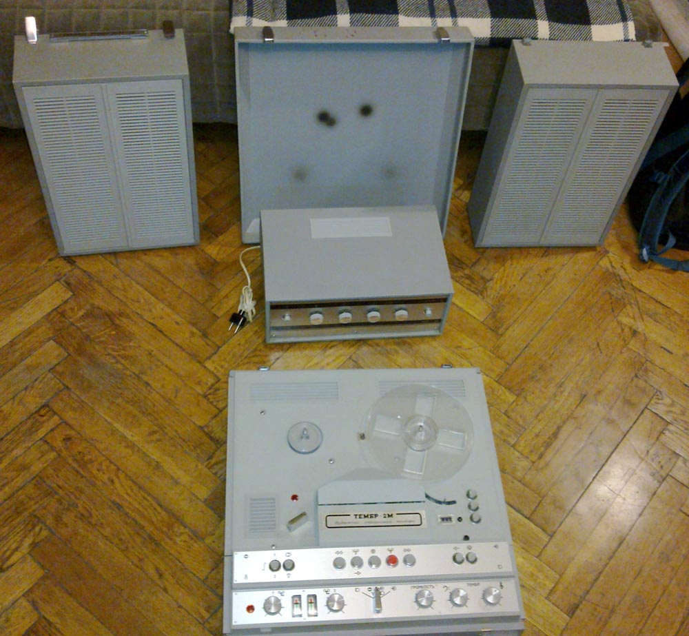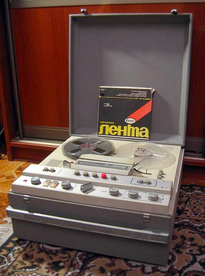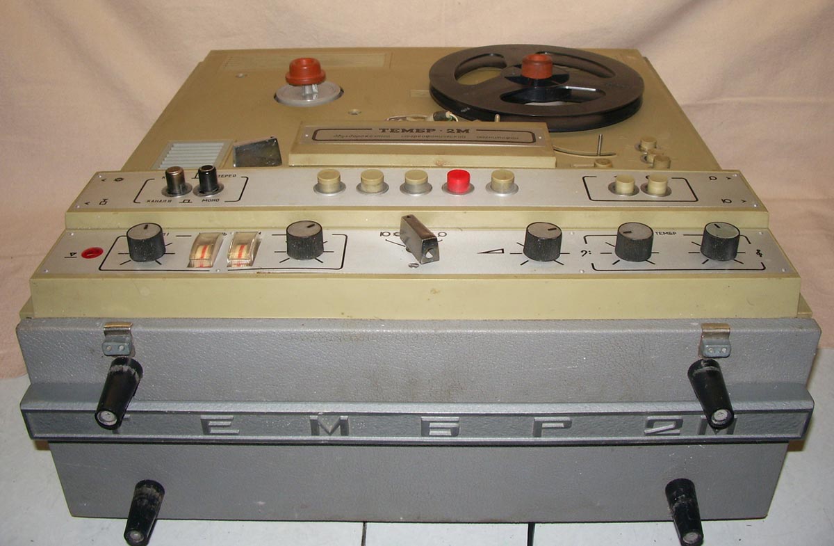Стереофонический магнитофон "Тембр-2М" выпускал с 1977 года Горьковский завод имени Петровского. Трёхскоростной транзисторный магнитофон предназначен для записи и воспроизведения фонограмм. В комплект входит усилитель "П-70" (он описан на сайте) с двумя акустическими системами. Магнитофон имеет контрольные громкоговорители. Краткие характеристики: Скорость протяжки ленты: 4,76, 9,53 и 19,05 см/сек. Номинальная выходная мощность на собственную АС - 2 Вт. Рабочий диапазон частот соответственно скорости: 63...6300, 63...12500 и 40...16000 Гц. Габариты модели - 485х445х225 мм. Масса - 25 кг. Цена 665 рублей.