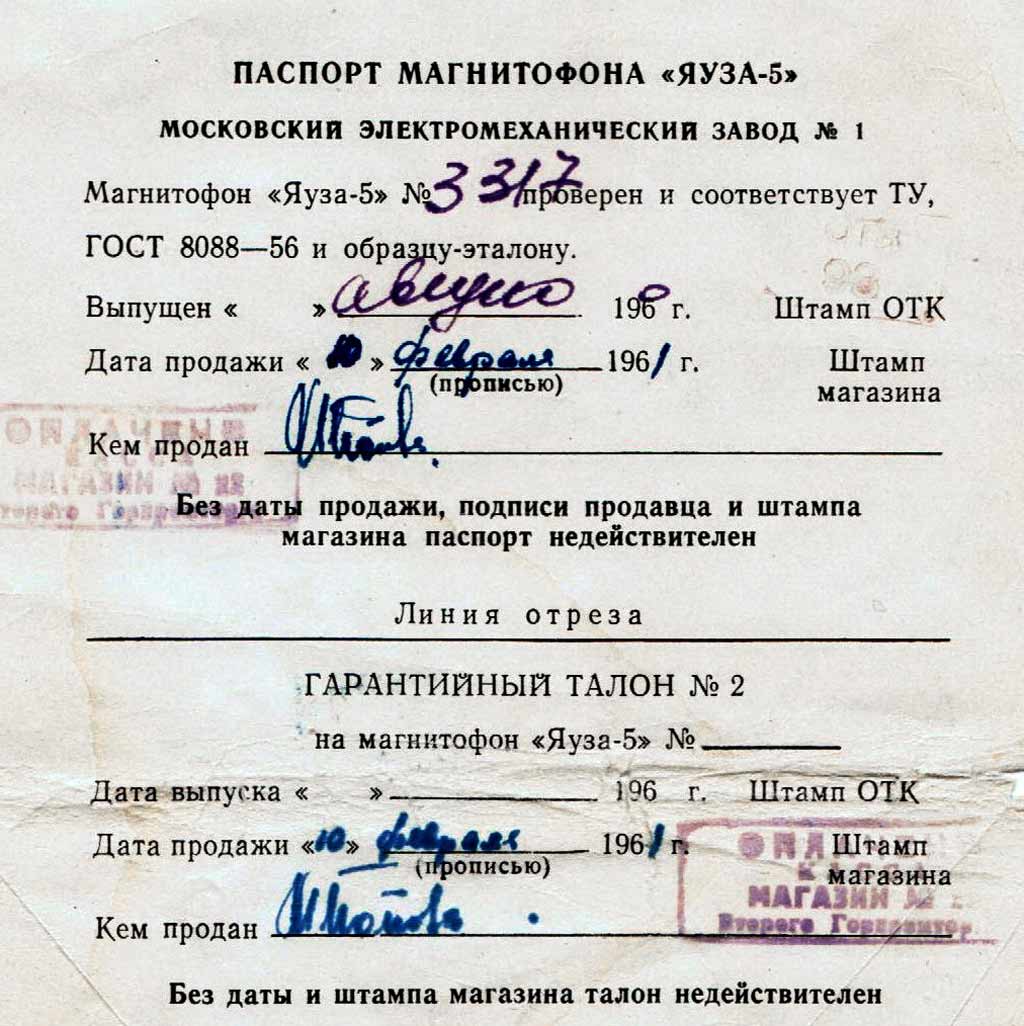 и выпускалась недолго совместно с моделью 2-го варианта. Магнитофоны ''Яуза-5''