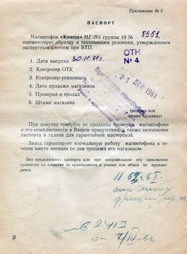 магнитофон "Комета МГ-201" с 1961 года выпускал Новосибирский завод "ТочМаш".