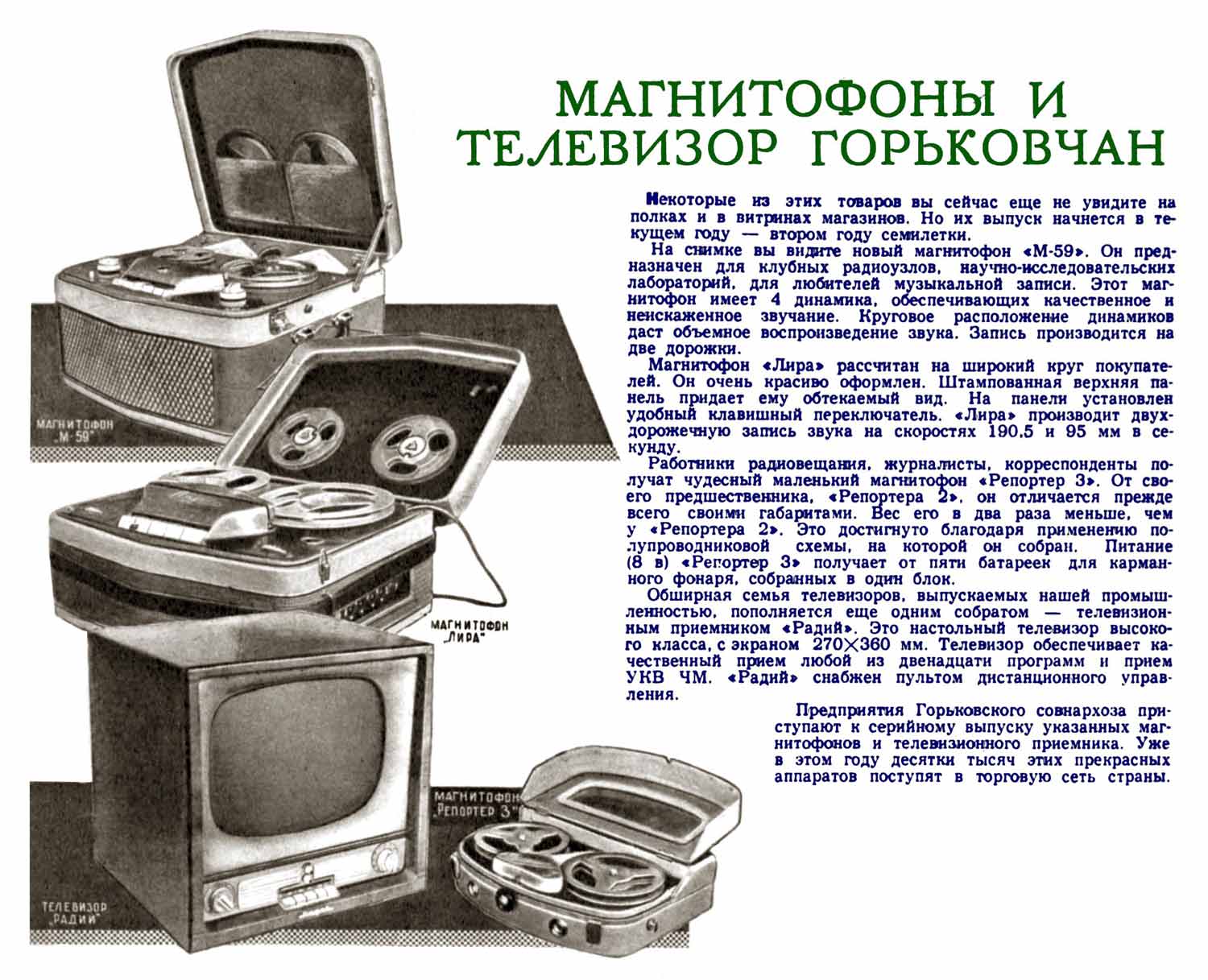 магнитофон "Лира" в 1958 году опытно выпущен Горьковским заводом имени