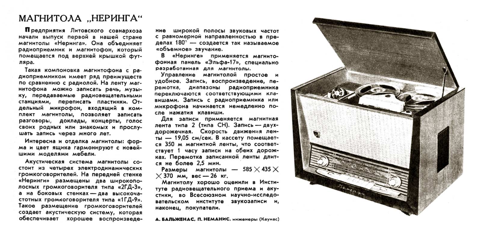 Описание магнитолы "Неринга".
