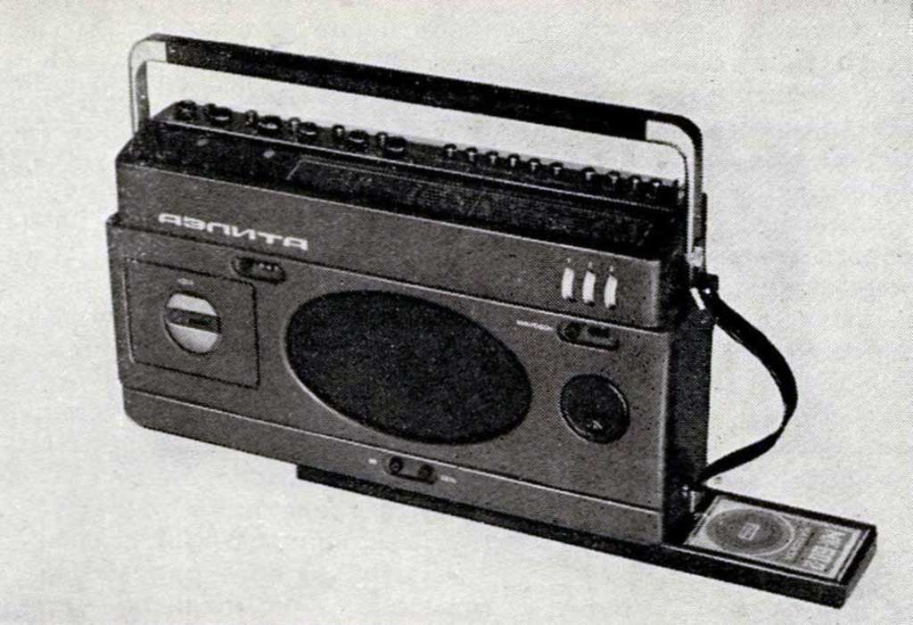 Кассетная переносная магнитола первого класса "Аэлита" разработана в 1980 года в КБ завода "Курганприбор". Дизайнеры: Л.А.Кузьмичёв и В.П.Прохоренков. Информация в журнале "Техническая эстетика" № 1 за 1981 год.