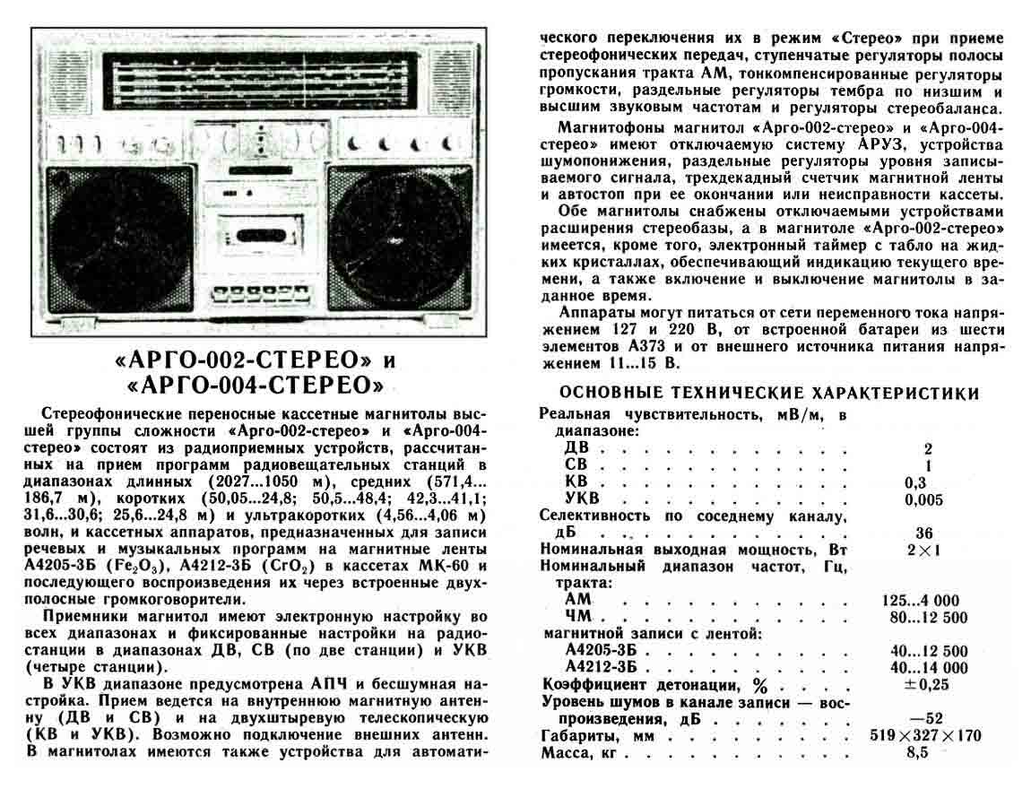Магнитол "Арго-002-стерео" было выпущено небольшое количество. С 1985 года