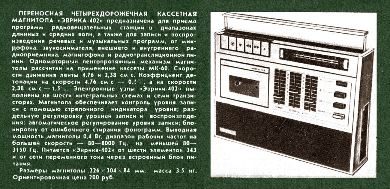 Переносная кассетная магнитола "Эврика-402"