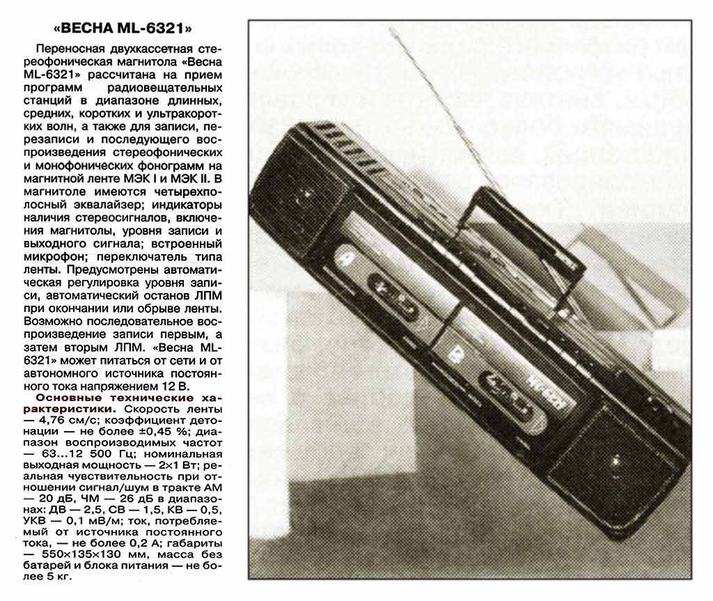 под наименованием "Весна МЛ-6321С". Стереофоническая магнитола "ML-6321С"