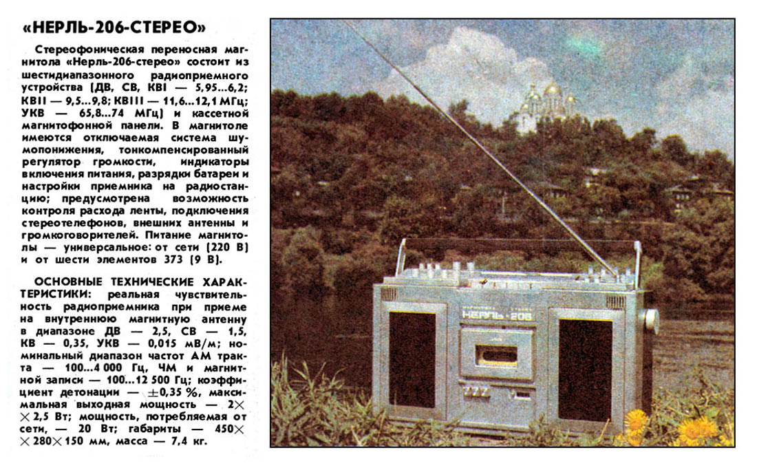 стереофоническая кассетная магнитола "Нерль-206-стерео" с 1982 года выпускалась