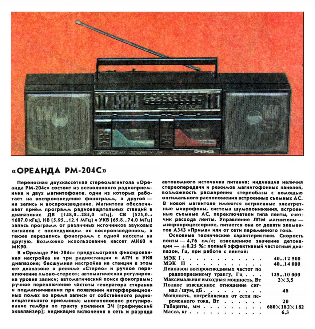 магнитола "Ореанда РМ-204-С" с 1989 года выпускалась Симферопольским заводом