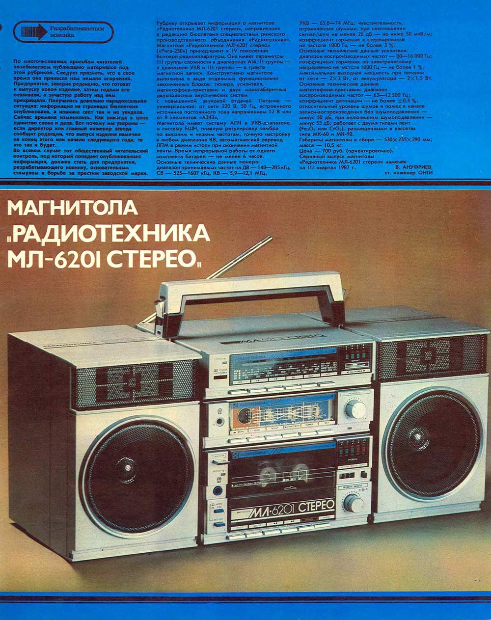 "Радиотехника МЛ-6201" и "Рига-230" с 1987 года выпускал Рижский радиозавод