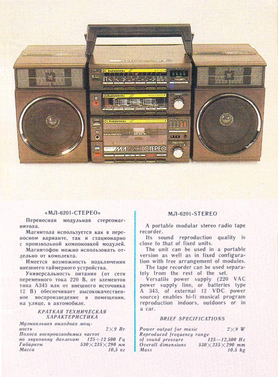 двумя наименованиями. Магнитола состоит из тюнера, радиоприёмника, магнитофонной
